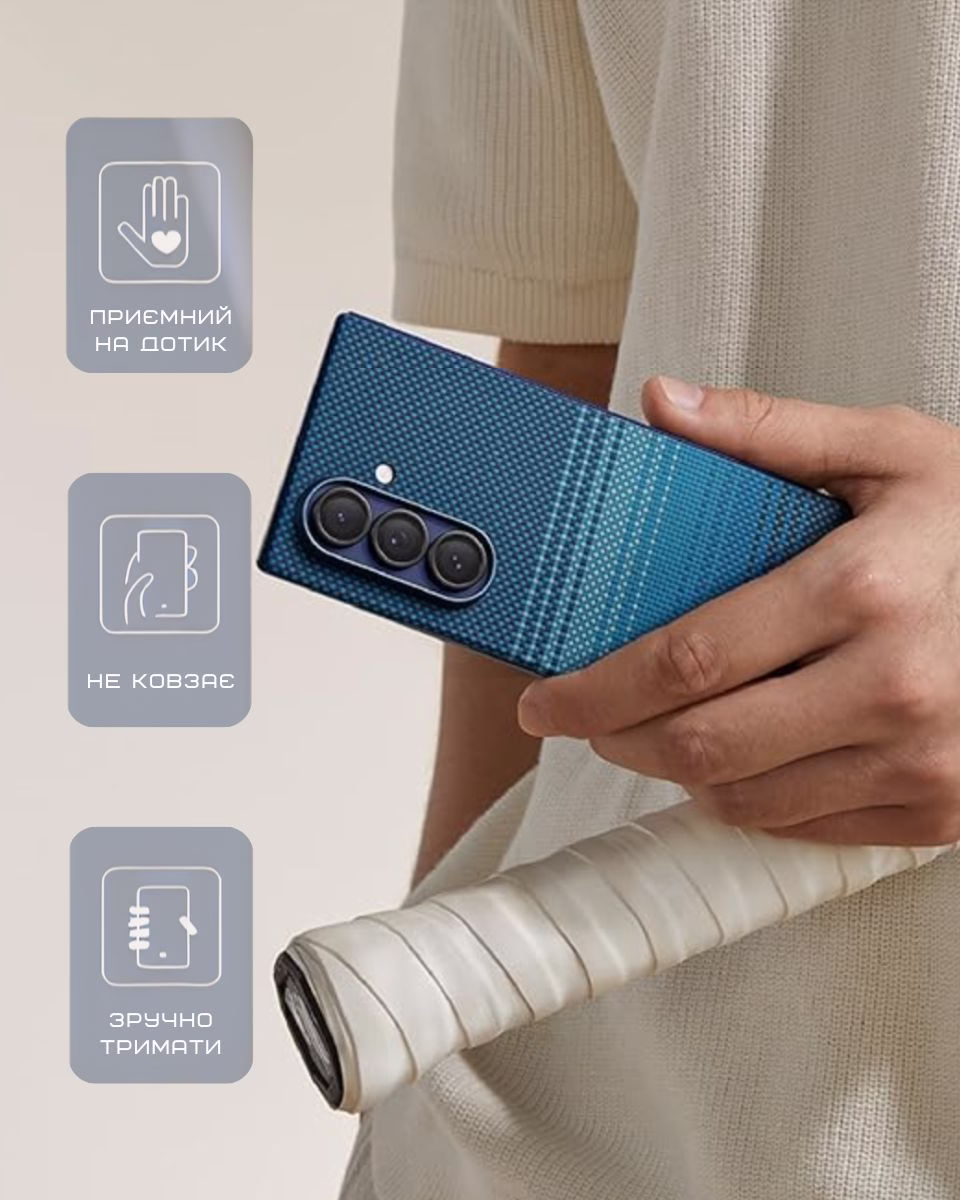 Сверхпрочный чехол из арамидного волокна защищает телефон от неожиданных падений, царапин и ударов. Стильный, невесомый и надежный аксессуар премиального качества, который не захочется выпускать из рук.