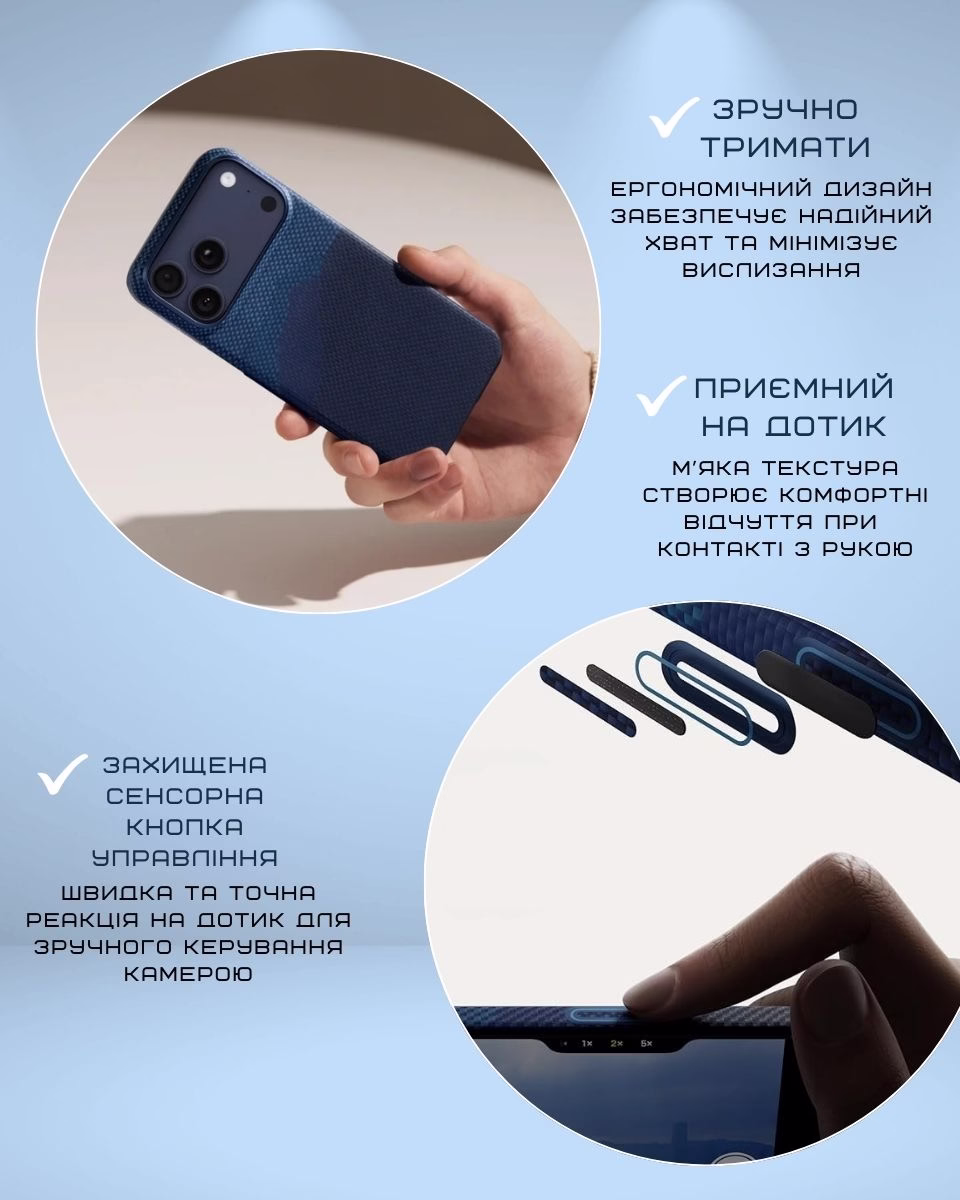 Сверхпрочный чехол из арамидного волокна защищает телефон от неожиданных падений, царапин и ударов. Стильный, невесомый и надежный аксессуар премиального качества, который не захочется выпускать из рук.