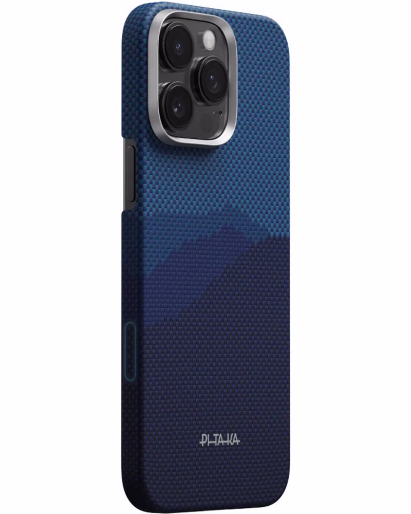Чехол Pitaka Ultra-Slim из серии Weaving+ Moment в дизайне Over The Horizon — это не просто аксессуар, а воплощение эстетики и высоких технологий. Изготовленный из авиационного арамидного волокна, он обеспечивает прочность стали при невероятной легкости, сохраняя оригинальный изящный силуэт вашего iPhone 16 Pro.
