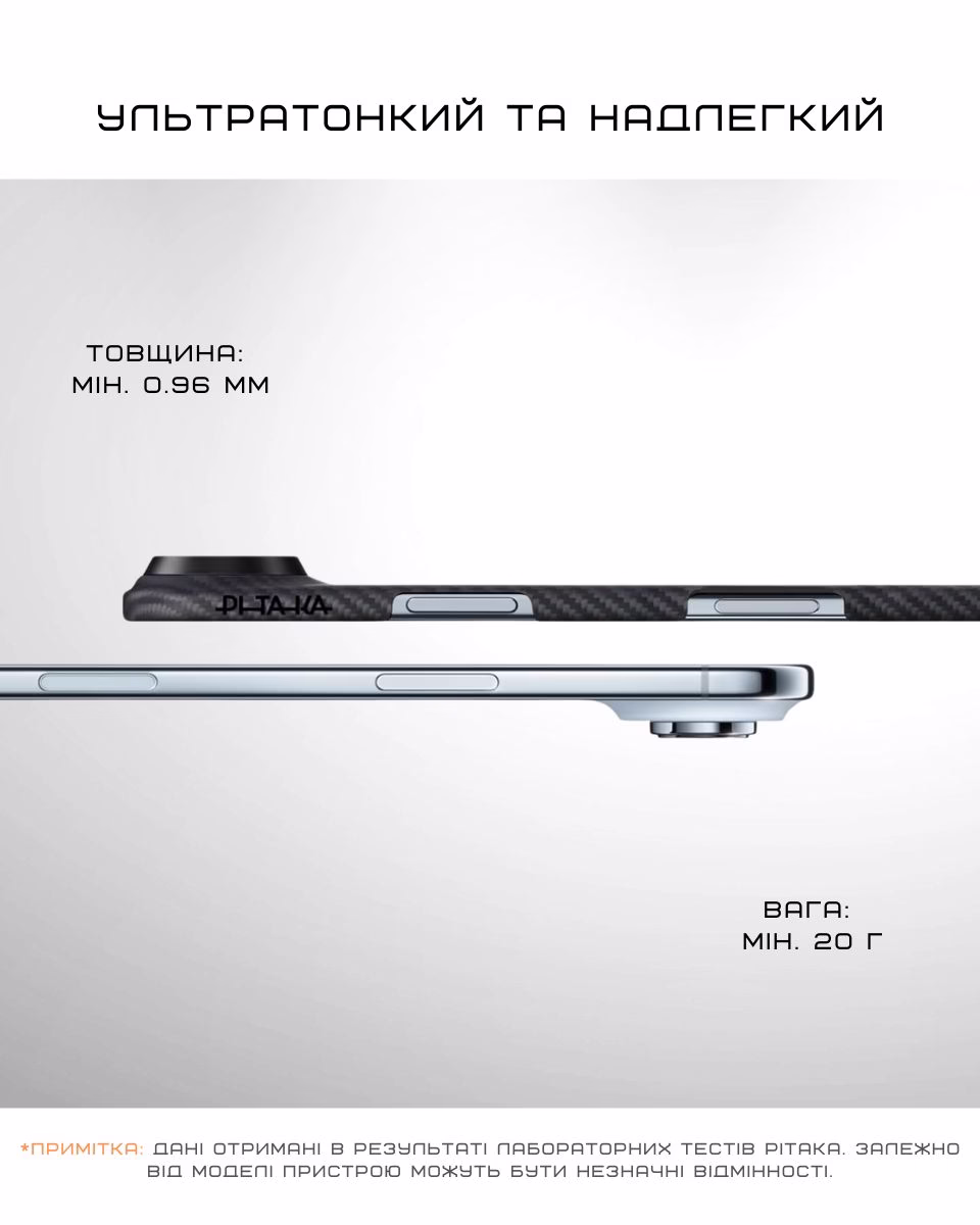 Чехол Pitaka Ultra-Slim не скрывает iPhone Air — он лишь подчёркивает его тонкий, элегантный профиль. Арамидное волокно защищает телефон от неожиданных падений, царапин и ударов. Чехол сохраняет естественное, комфортное ощущение в руке — будто держишь сам iPhone, только с дополнительным уровнем защиты.