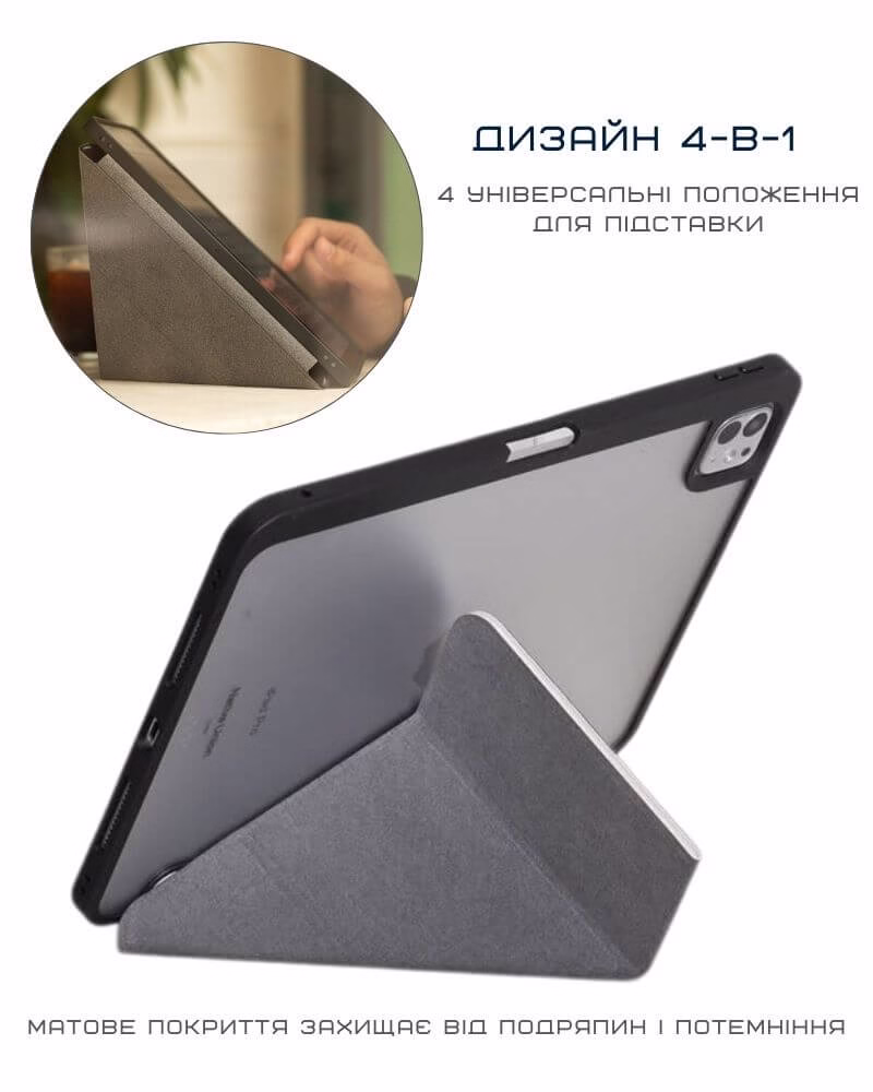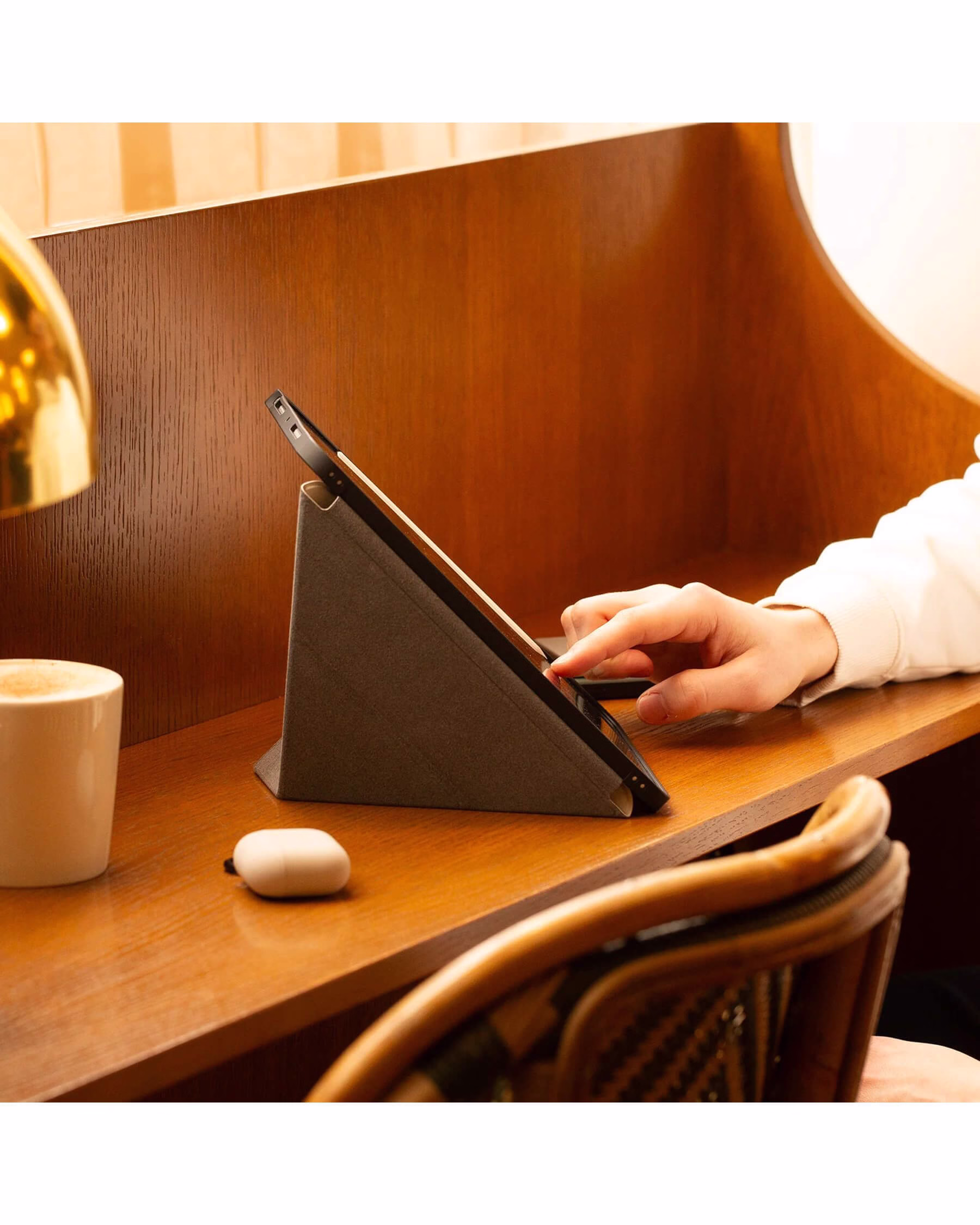 Чехол Active Case создан для тех, кто ценит комфорт и производительность. Передняя панель легко трансформируется в подставку, предлагая четыре варианта положения для любых задач. Просматривай видео, рисуй, набирай текст или веди видеозвонки - выбирай угол наклона, который лучше всего соответствует твоему ритму жизни.