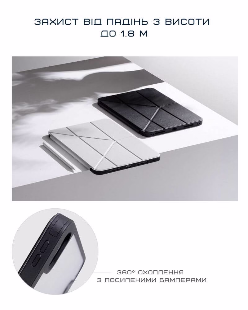 Надежная защита для всех владельцев iPad. Прочный корпус с усиленными краями и защитой от падений с высоты до 1,8 м. Чехол обеспечивает безопасность девайса со всех сторон, чтобы ты мог сосредоточиться на учебе, работе или отдыхе, не волнуясь о повреждениях.
