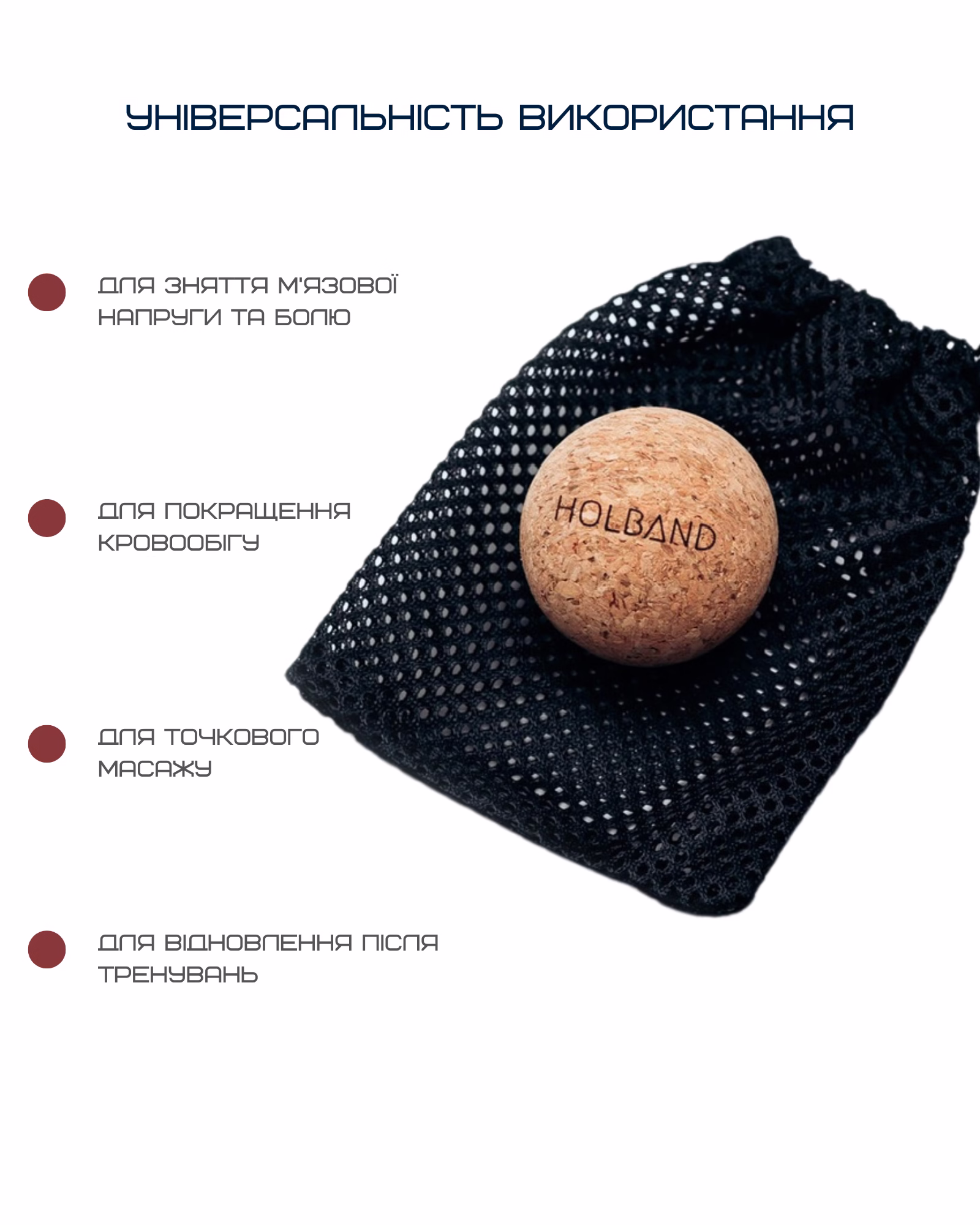 Массажный мячик со 100% натурального пробкового дерева – это экологичный, прочный и приятный на ощупь инструмент для глубокого массажа. Корковое дерево – это не только долговечный и прочный материал, но и приятный на ощупь, гипоаллергенный и абсолютно безопасный для кожи. Благодаря оптимальной жесткости мячик не слишком жесткий, чтобы вызвать дискомфорт, но достаточно плотный, чтобы глубоко прорабатывать мышцы. Его текстурированная поверхность обеспечивает надежное сцепление, он не скользит и не прилипает к коже. Идеально подходит для активных людей, желающих поддерживать свое тело в тонусе, уменьшить боль и восстановиться после тренировок или тяжелых рабочих дней.