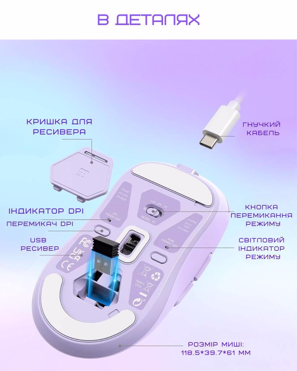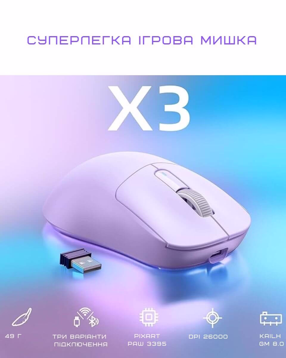 Игровая мышь Attack Shark X3 Gaming Mouse Purple (AS-X3-PL)