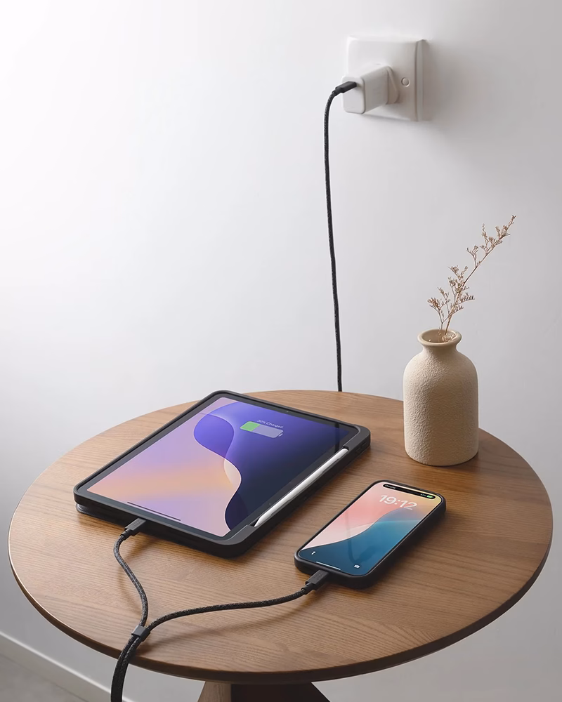 Native Union Belt Cable 2-in-1 — это инновационное решение, позволяющее забыть о путанице проводов. Благодаря умному дизайну с двойным коннектором USB-C, вы можете заряжать два устройства одновременно от одного порта зарядного блока. Кабель поддерживает невероятную мощность до 140 Вт, что делает его подходящим даже для самых мощных MacBook Pro.