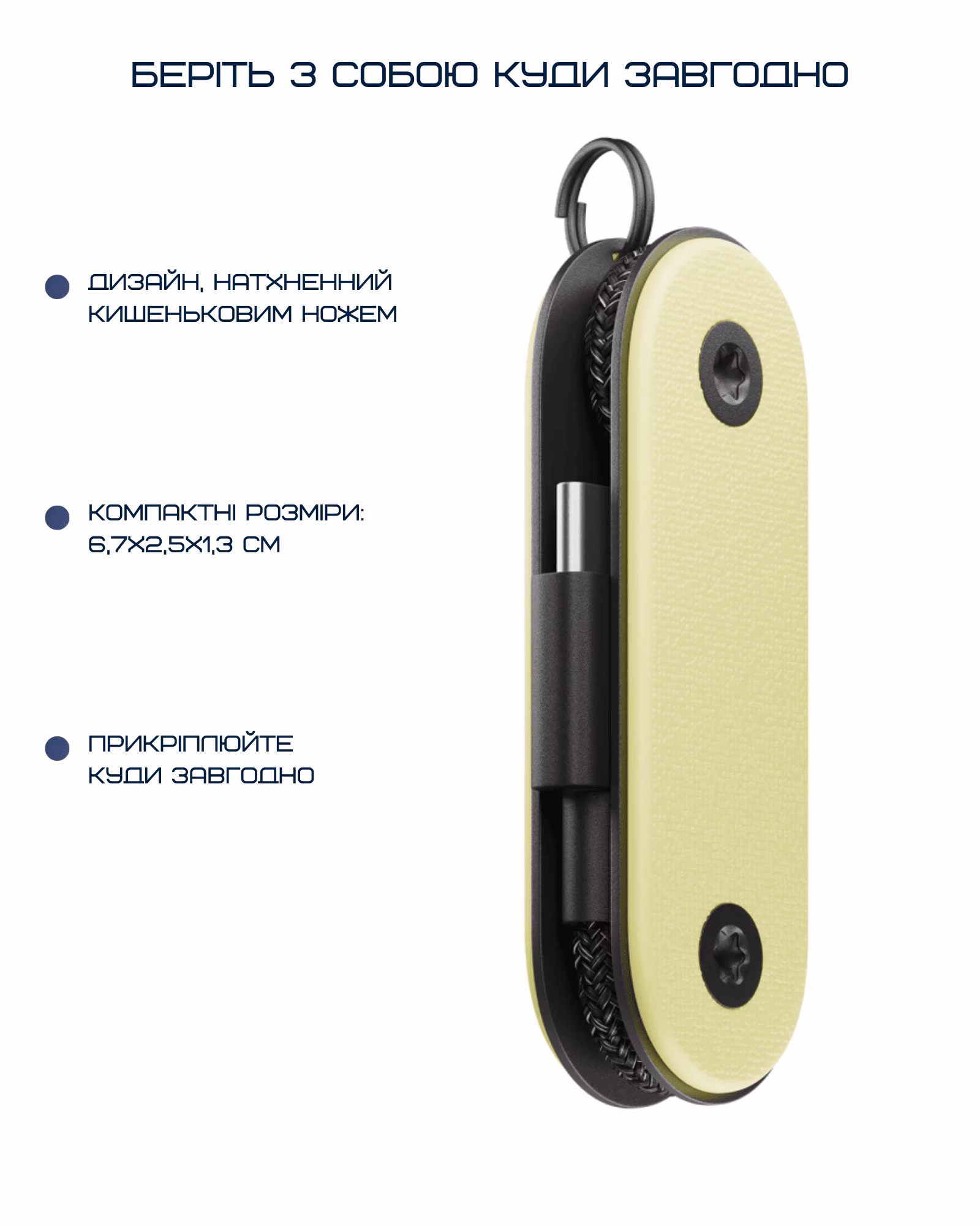 - Сверхкомпактный дизайн брелока, который можно прикрепить к ключам и носить с собой повсюду.