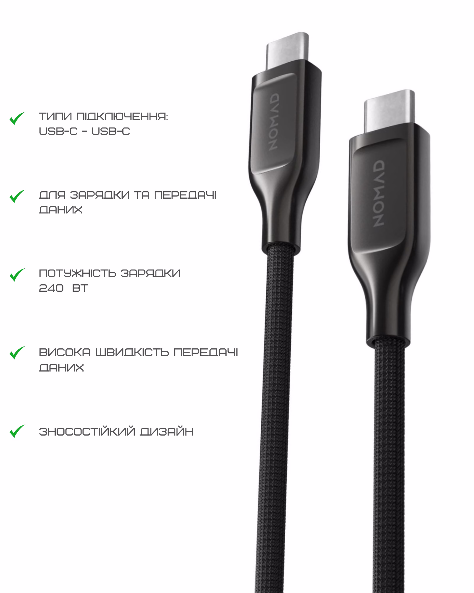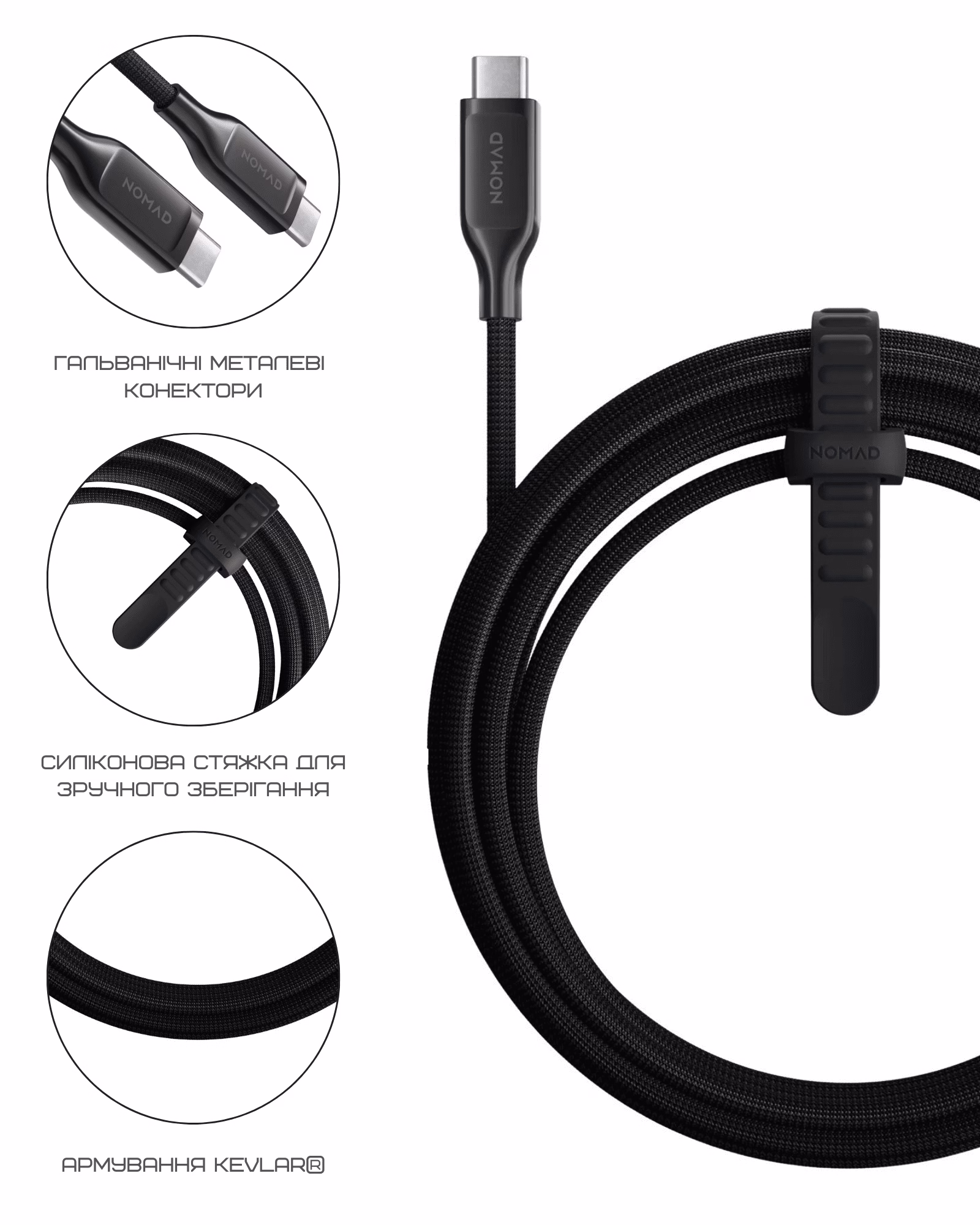 Nomad USB-C Kevlar Cable 240W — это больше чем просто аксессуар: это обязательный элемент арсенала для людей, которые ценят эффективность и не прощают сбоев. Спроектирован для живущих в быстром темпе, работает на выезде, путешествует или требует максимального от своих гаджетов. Его надежность и производительность позволяют не отвлекаться по мелочам, фокусируясь на важном: креативе, бизнесе, развитии. Этот кабель разработан для настоящих профессионалов, желающих держать ситуацию под контролем даже в движении.