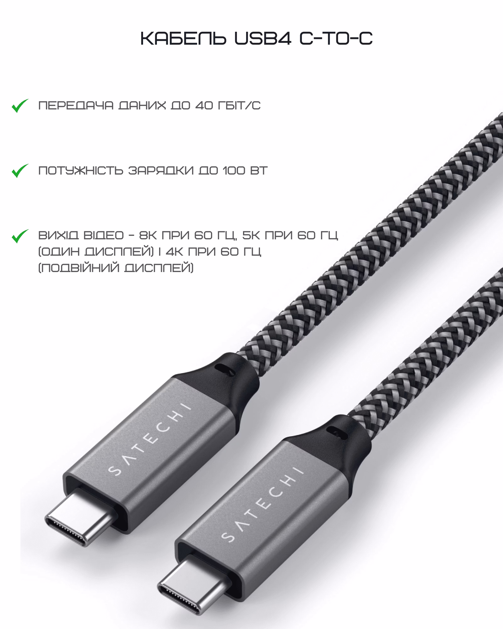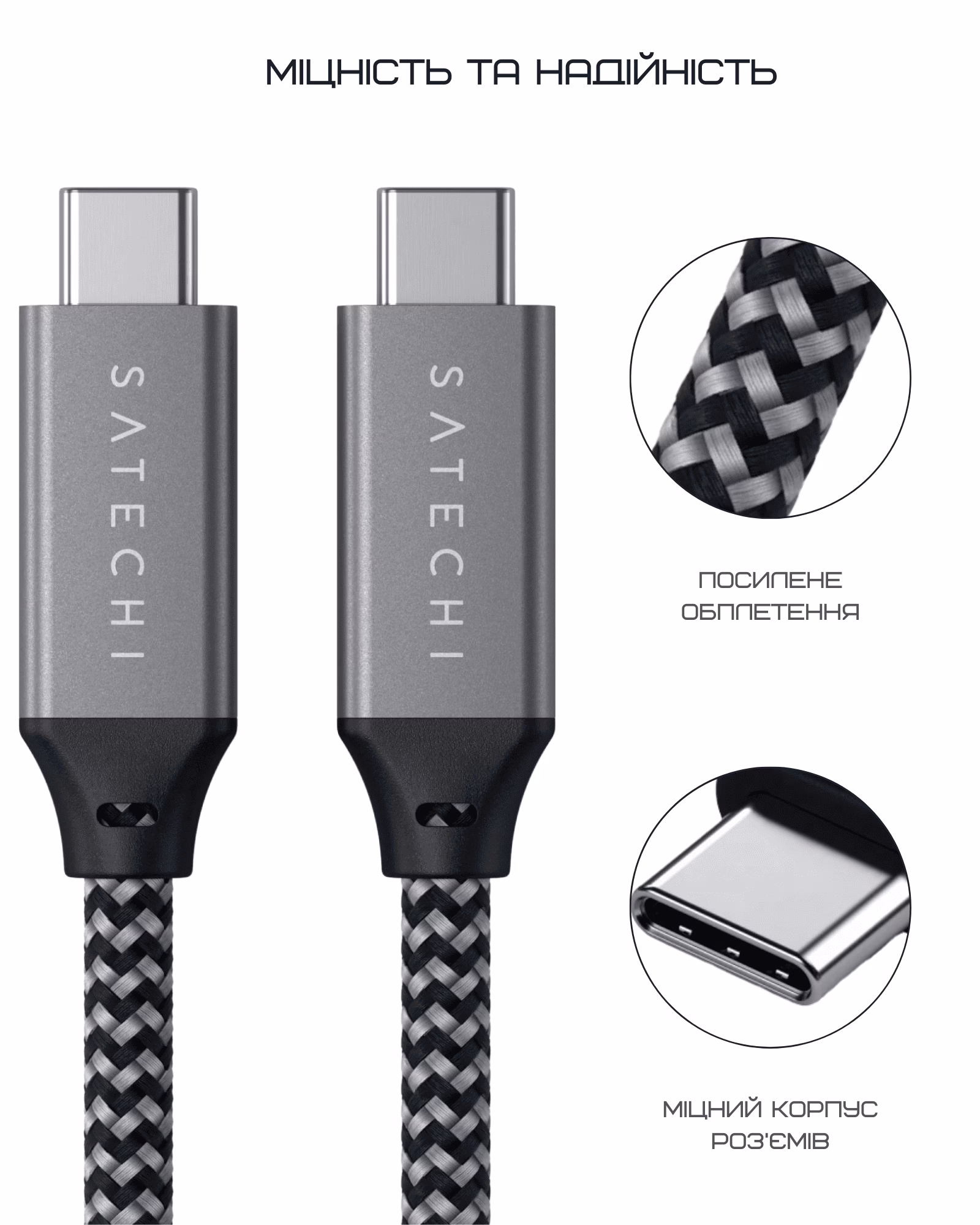 Если Вы работаете с премиальной техникой, важно, чтобы Ваш кабель сочетал функциональность и стиль. Современный дизайн Space Gray кабеля Satechi USB4 C to C идеально сочетается с техникой Apple, придавая элегантность Вашему рабочему пространству. Его усиленная конструкция гарантирует долговечность даже при интенсивном использовании.