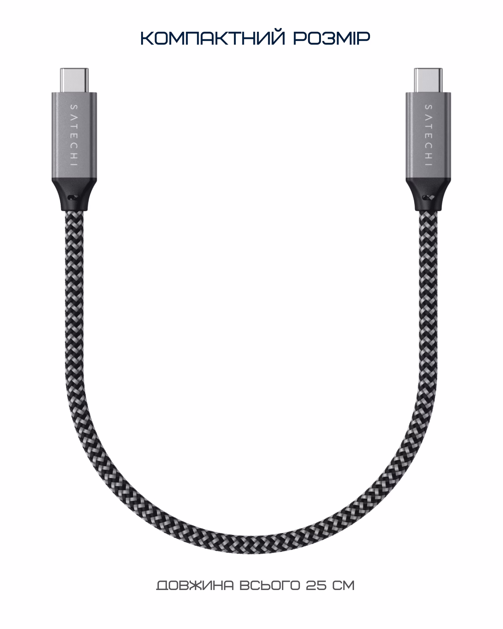 Ваш MacBook или другое высокопроизводительное устройство требует большой зарядной мощности, но время ограничено. Кабель Satechi USB4 C to C поддерживает до 100 Вт мощности, что позволяет заряжать устройства быстро и эффективно. Благодаря длине 25 см, он позволяет удобно подключать устройства даже в компактных пространствах, не занимая лишнего места.