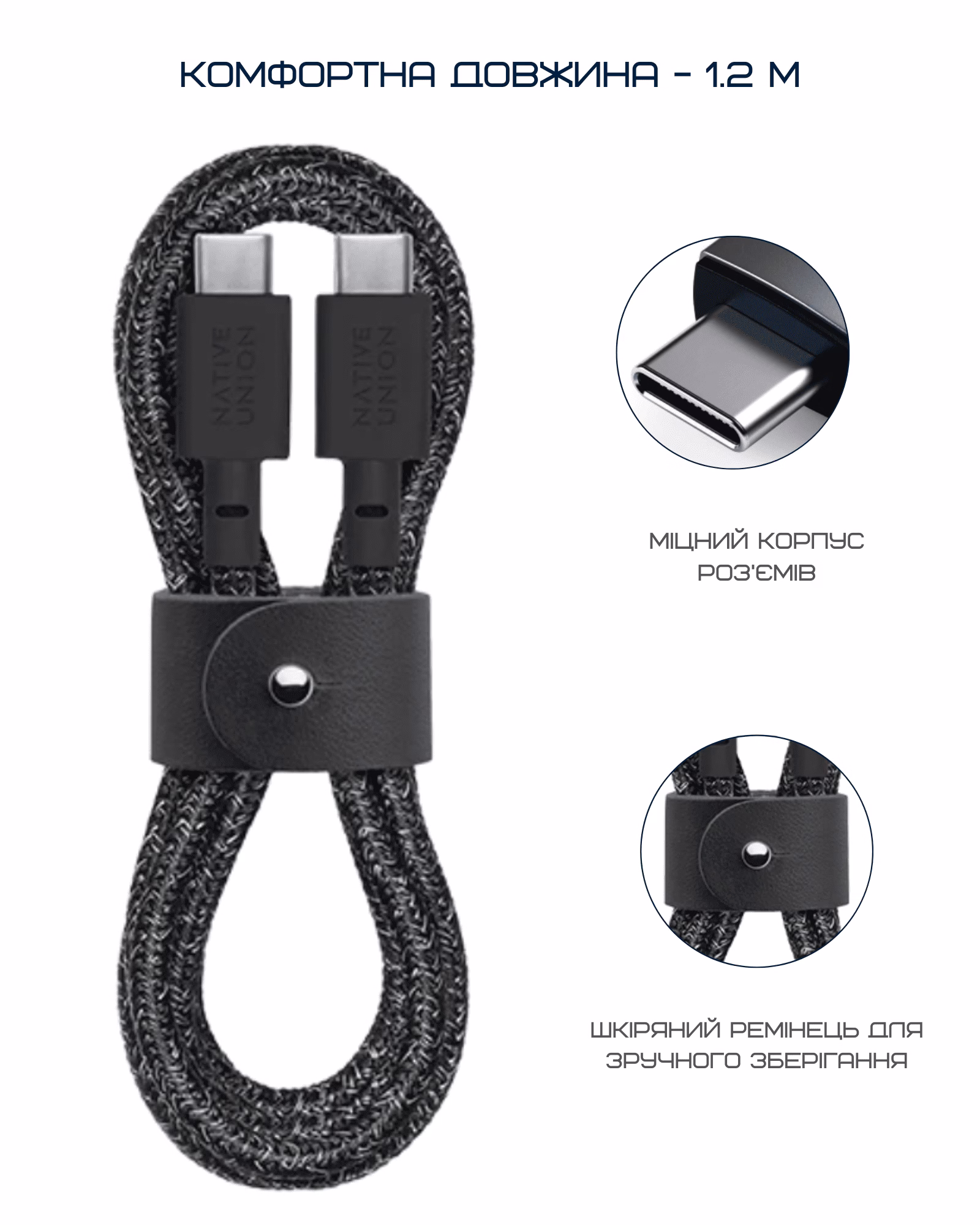 USB-C to USB-C Native Union Belt Cable — это не просто кабель, это стильный и функциональный аксессуар, который идеально дополнит Ваше рабочее пространство или путешествия. Благодаря универсальной совместимости, этот кабель может быть использован для подключения любых устройств с разъемом USB-C — смартфонов, ноутбуков, планшетов и других современных гаджетов. Вы можете без проблем заряжать свои устройства и передавать данные на высоких скоростях, что позволяет значительно сэкономить время. Независимо от того, используете ли Вы его дома, в офисе или поездках, кабель обеспечивает стабильность и скорость, что делает его универсальным и незаменимым для всех Ваших потребностей.