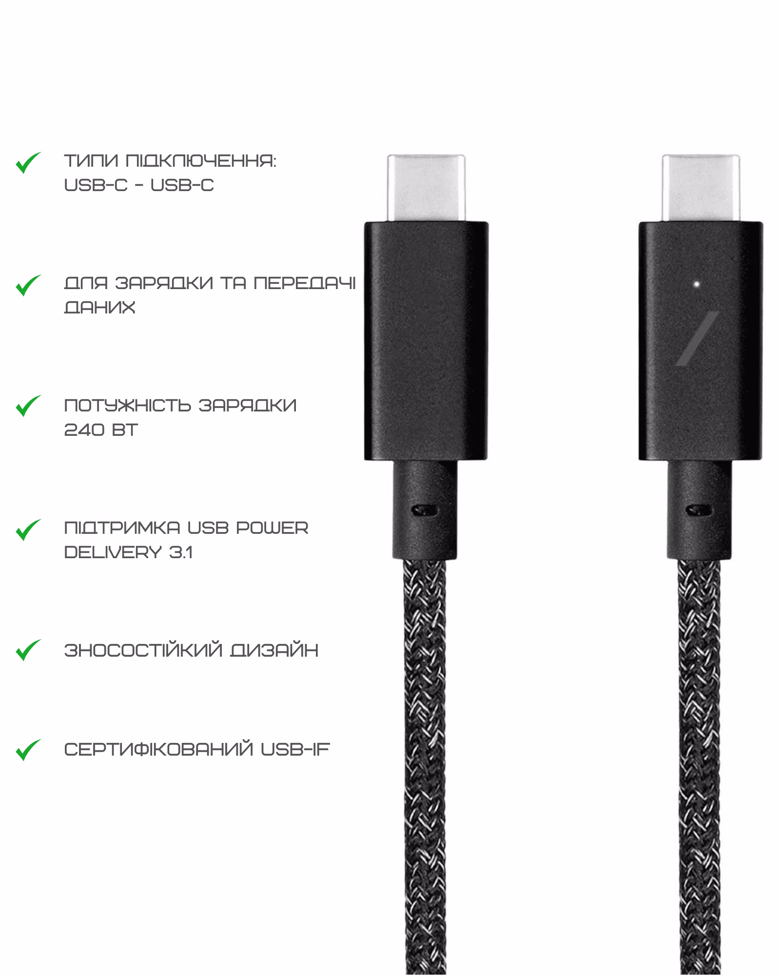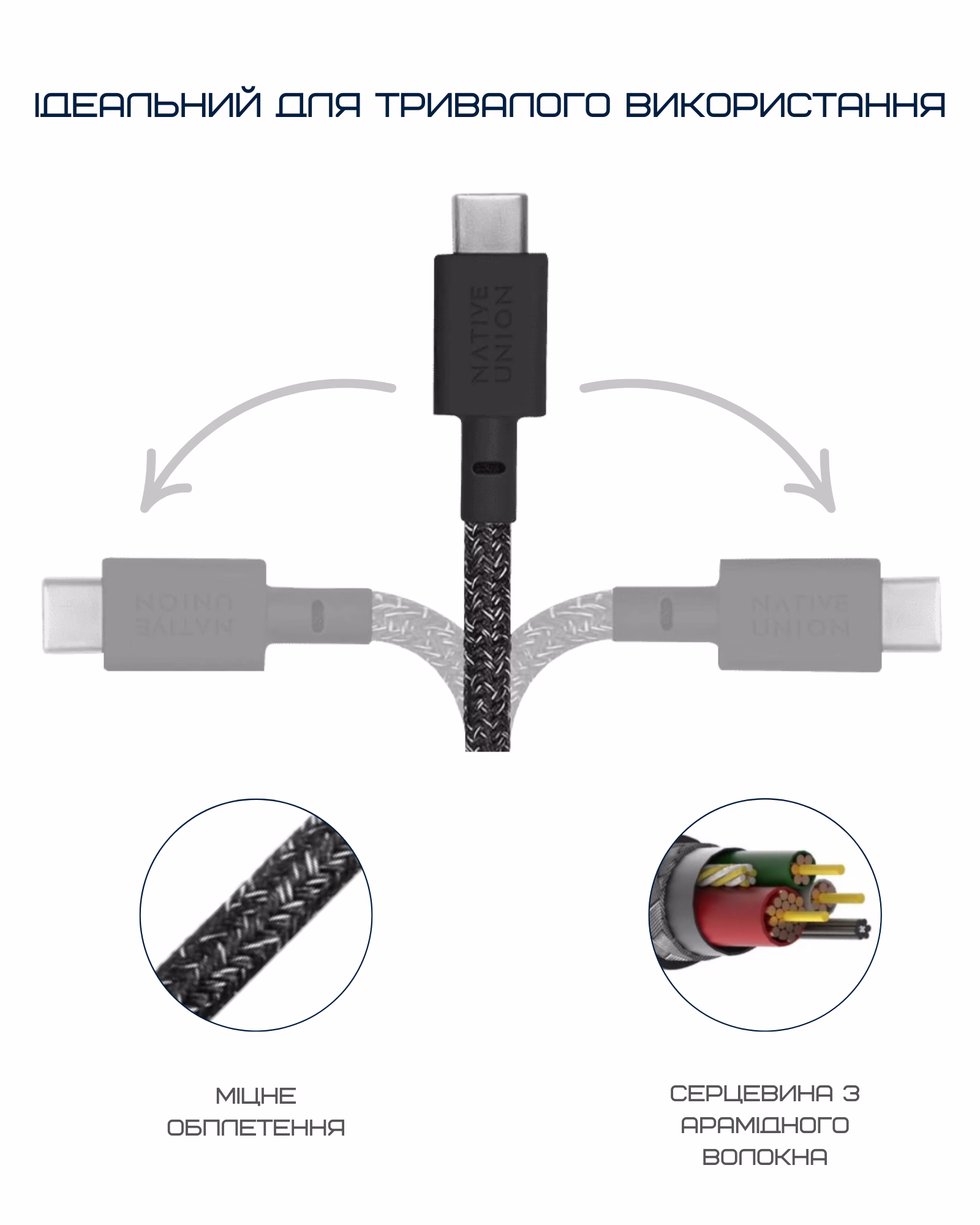 • Долговечность и защита: премиальные материалы и усиленная конструкция обеспечивают долгий срок службы кабеля даже при интенсивном ежедневном использовании.