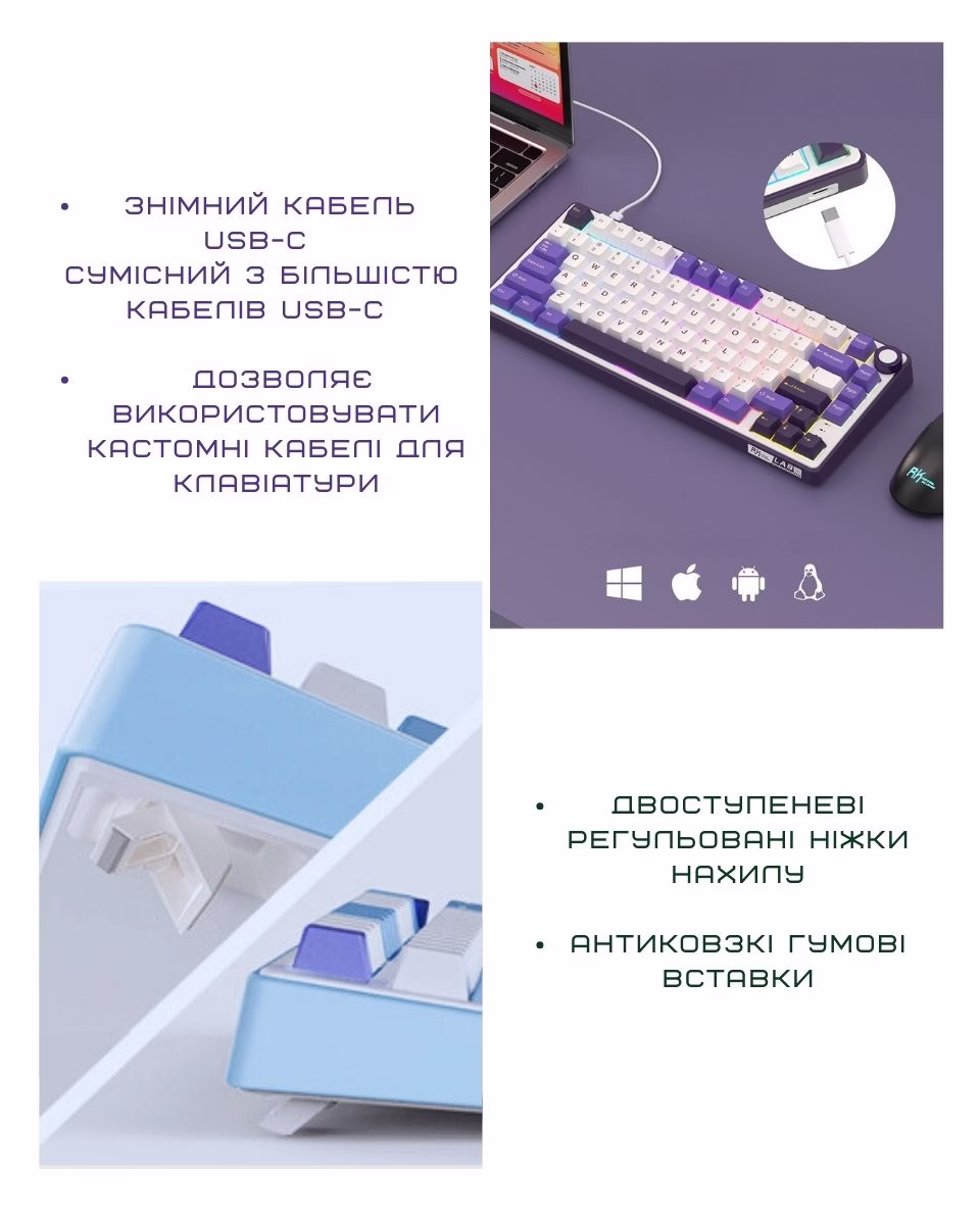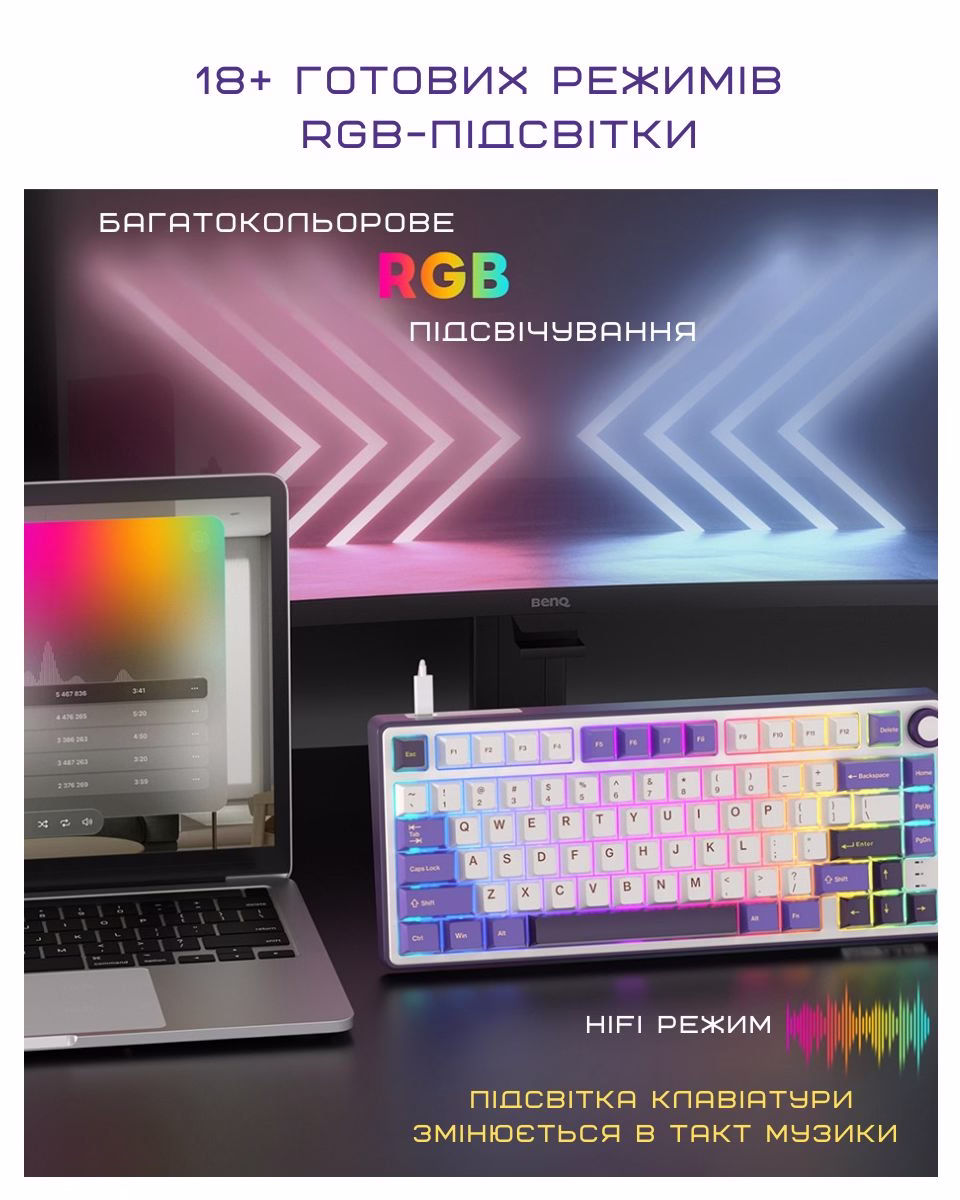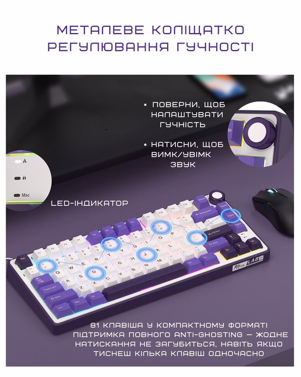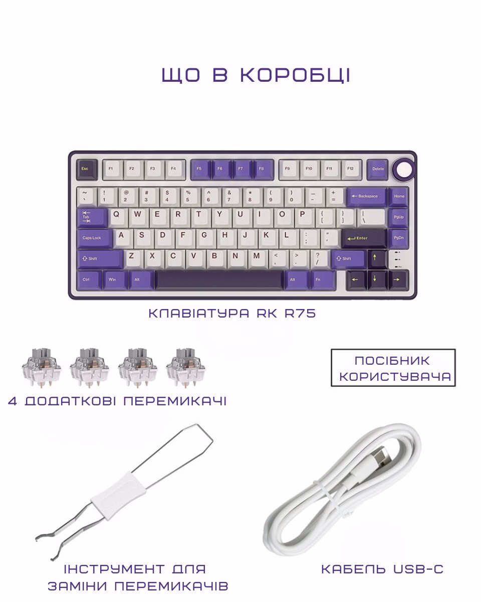 Клавиатура Royal Kludge R75 Wired UA\RU\ENG Cherry Profile (Silver Switch) Blackberry (RK-R75UARUENG-CHP-SS-BB)