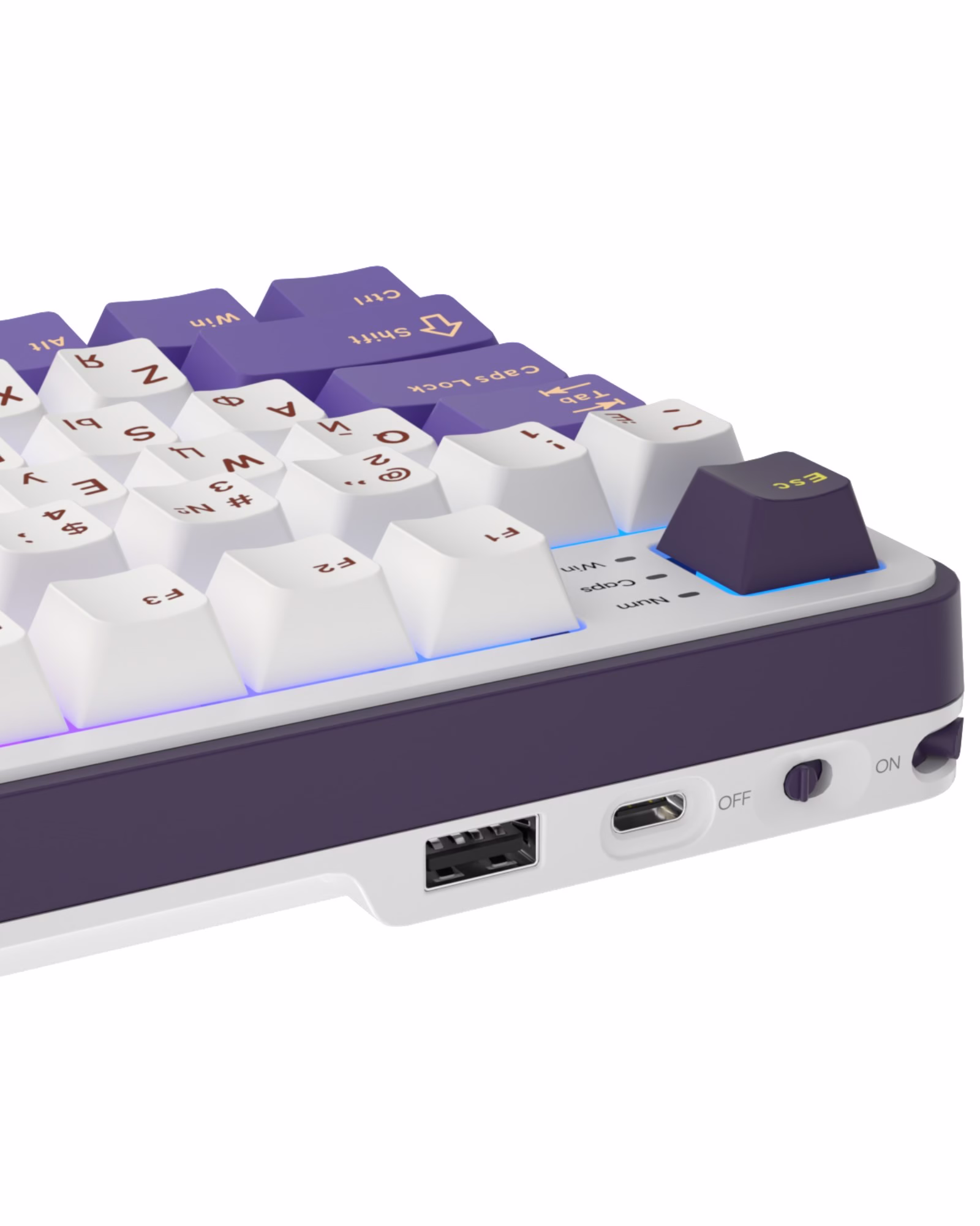 - USB-A pass-through сбоку клавиатуры — мгновенное подключение флешки, мышки или зарядного кабеля без необходимости подключать их к ПК.