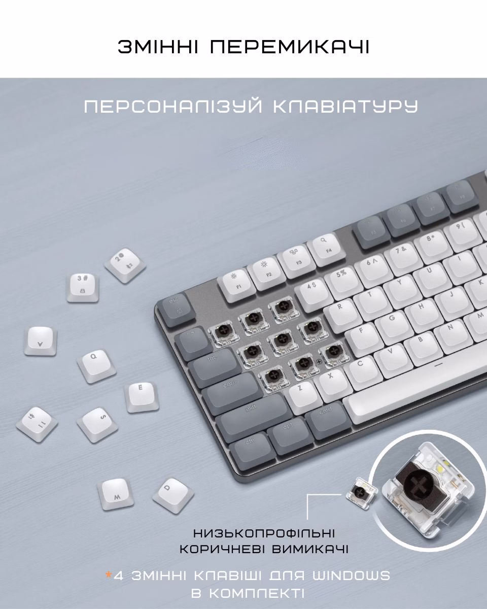 Благодаря регулируемым подставкам ты легко подберёшь идеальный угол наклона клавиатуры для максимального комфорта и продуктивности — это поможет снизить нагрузку на запястья и руки. Клавиатура работает с разными операционными системами: macOS, iPadOS, iOS и Windows. Специальные клавиши (O и P) помогают быстро и удобно переключаться между платформами, делая работу ещё проще.