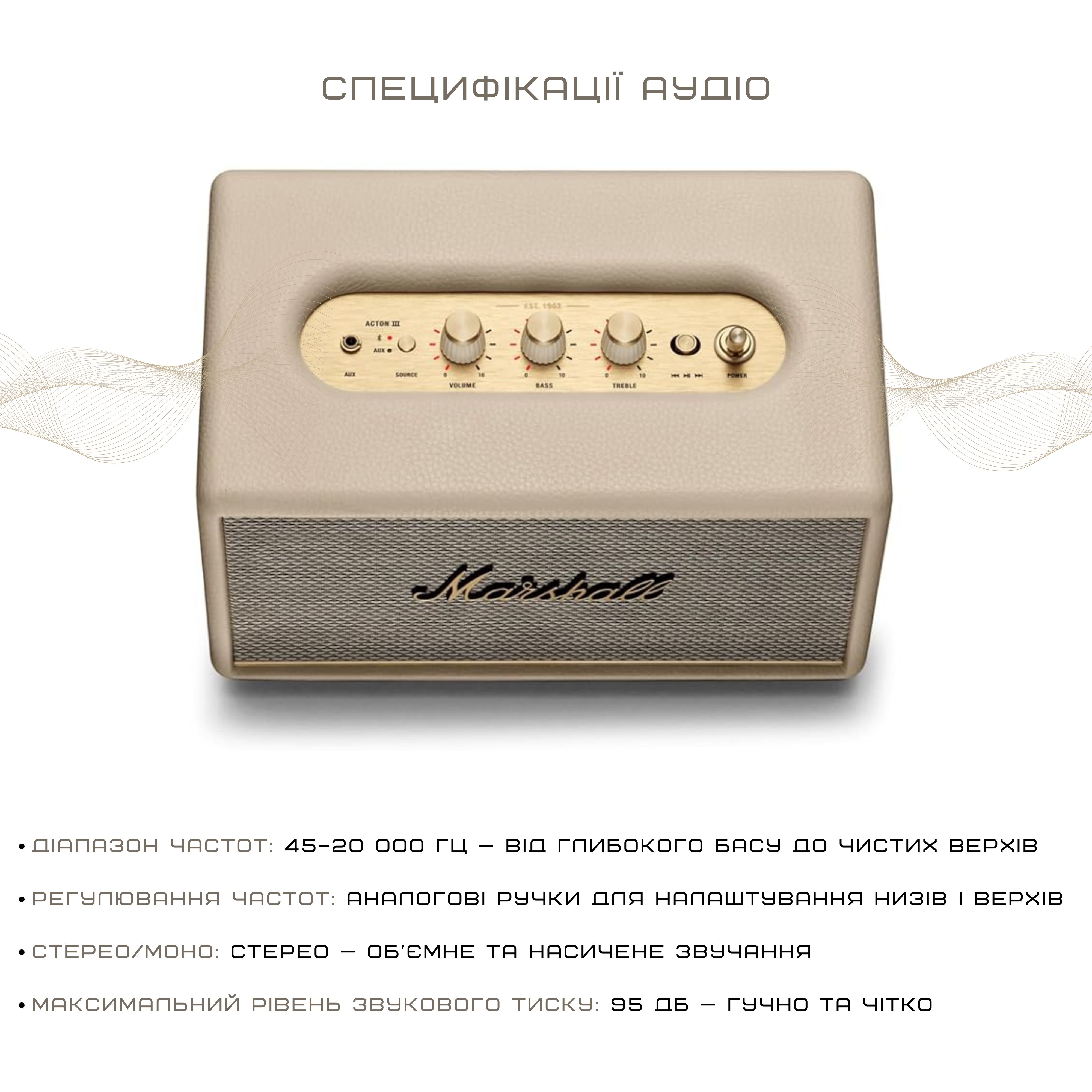 Колонки Marshall всегда ассоциируются с мощным, эмоциональным и глубоким звуком, Каждая частота - от низких басов до чистых высоких нот - звучит естественно, детализировано и с эмоциями. Независимо от того, рок, джаз или электроника - саунд льется динамично, резко и аутентично.