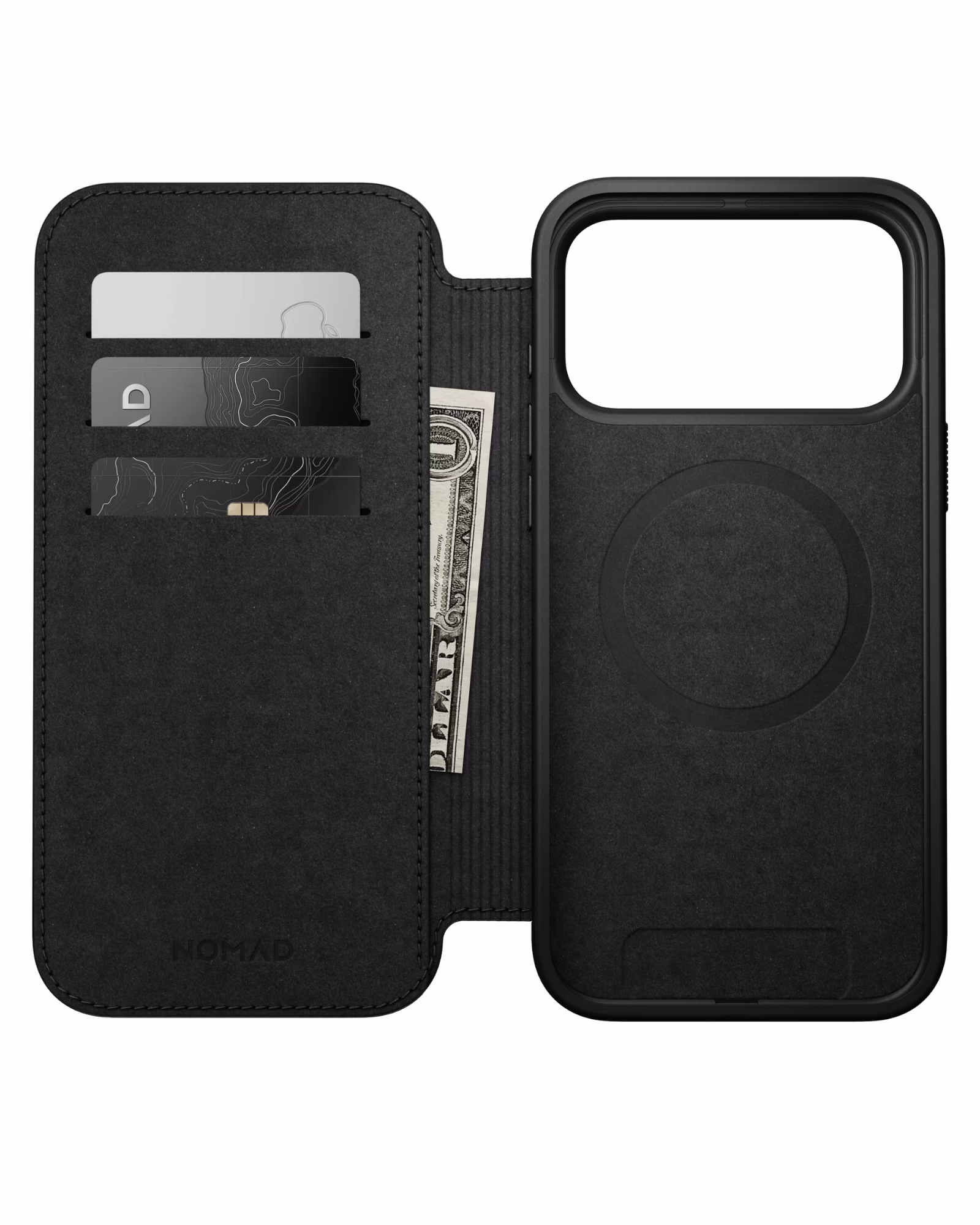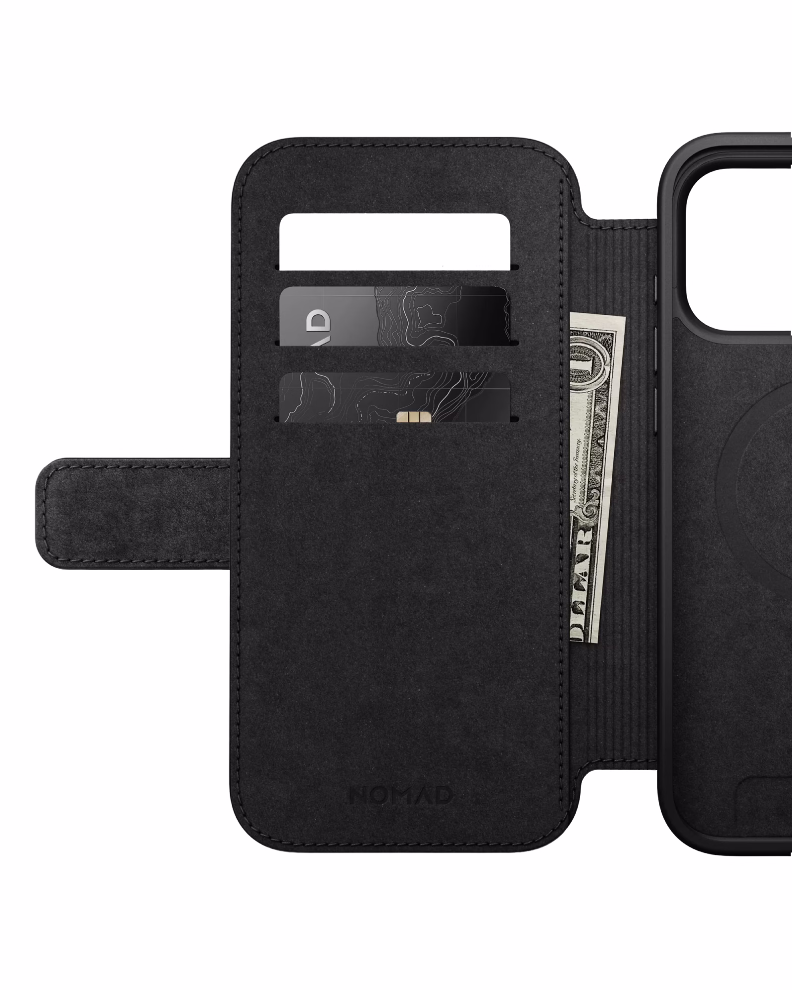 Классический чехол-книжка от Nomad из натуральной кожи, которая со временем приобретает уникальную патину. Обеспечивает надежную защиту и совместимость с аксессуарами MagSafe.
