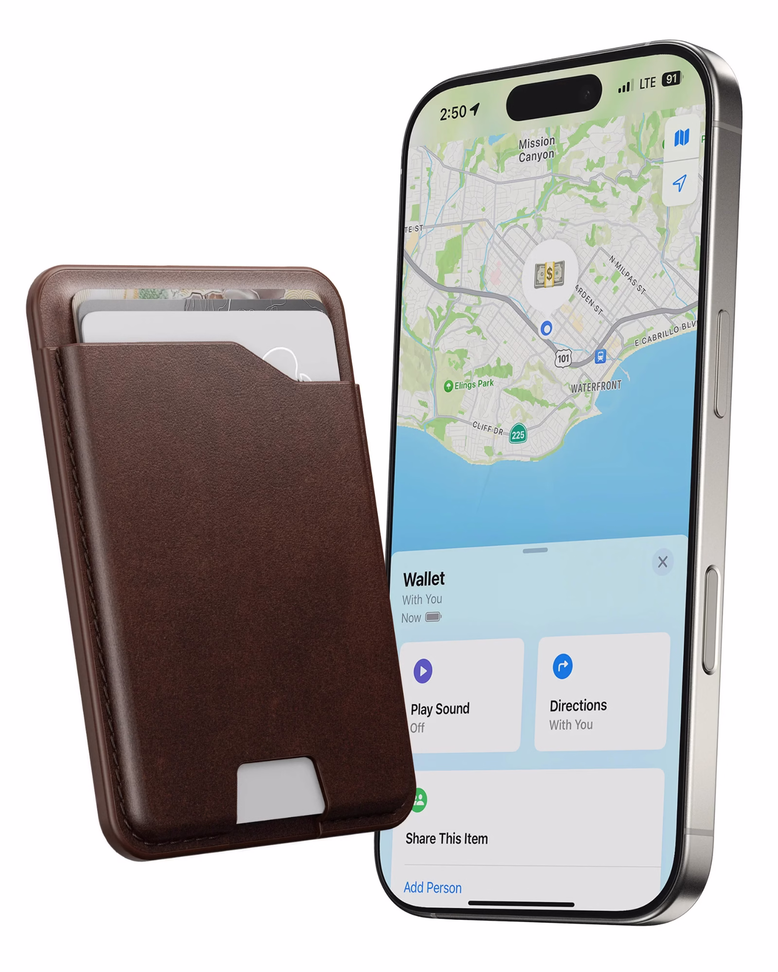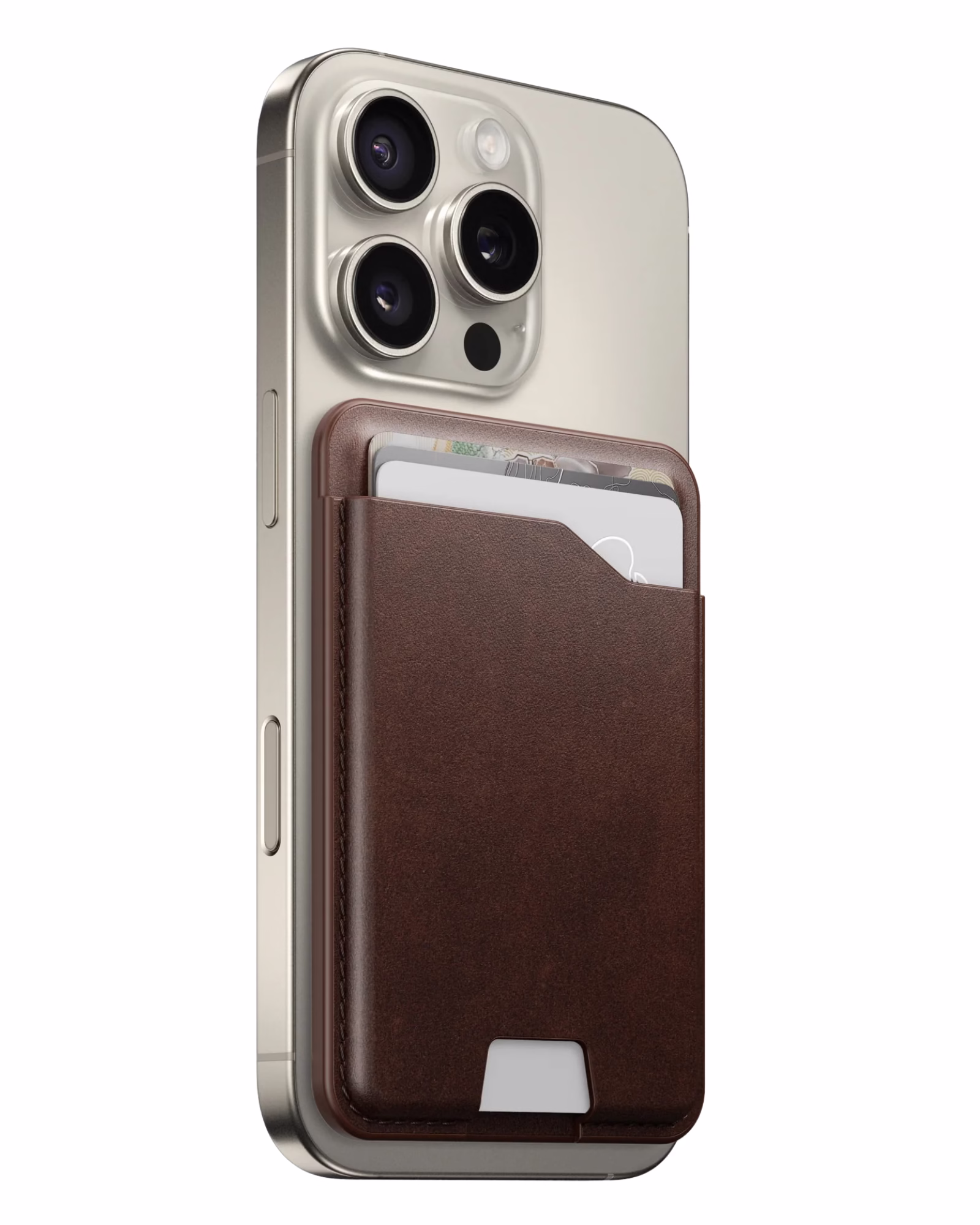 Современный кожаный кошелек Nomad, который крепится с помощью MagSafe и поддерживает функцию Find My. Изготовлен из премиальной кожи Horween, со временем приобретает уникальную патину.