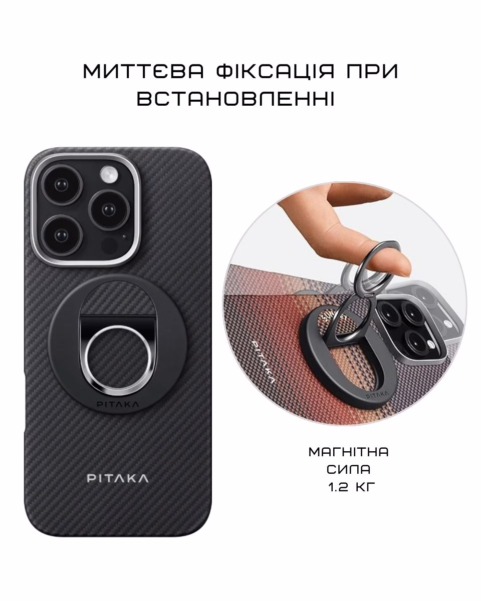 Иногда просто хочется дать рукам немного простора. В такие моменты выручит магнитное кольцо MagEZ Grip 3 от Pitaka. Маленькая, но функциональная вещица, которая сочетает в себе удобство держателя, подставки и поддержку MagSafe.