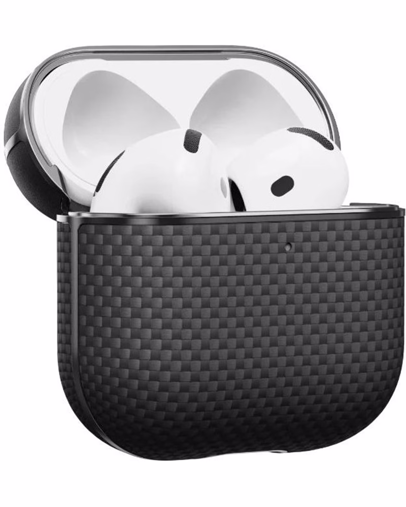 Магнитный чехол Pitaka Aramid Fiber Magnetic Case Plain Black/Grey для AirPods 4th Gen (APM2404)