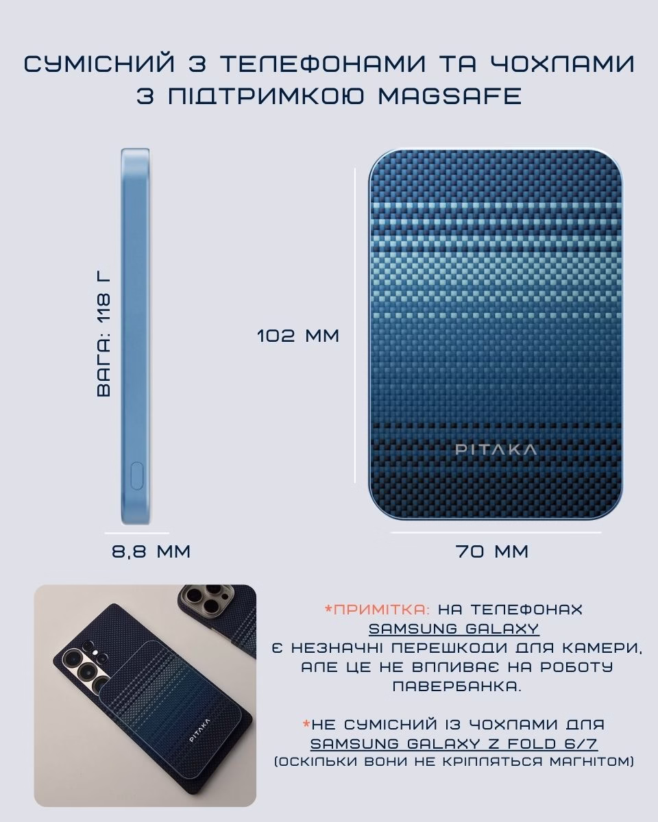 Магнитный повербанк Pitaka Aramid Qi2 5000 mAh Moonrise (PBQ2403)