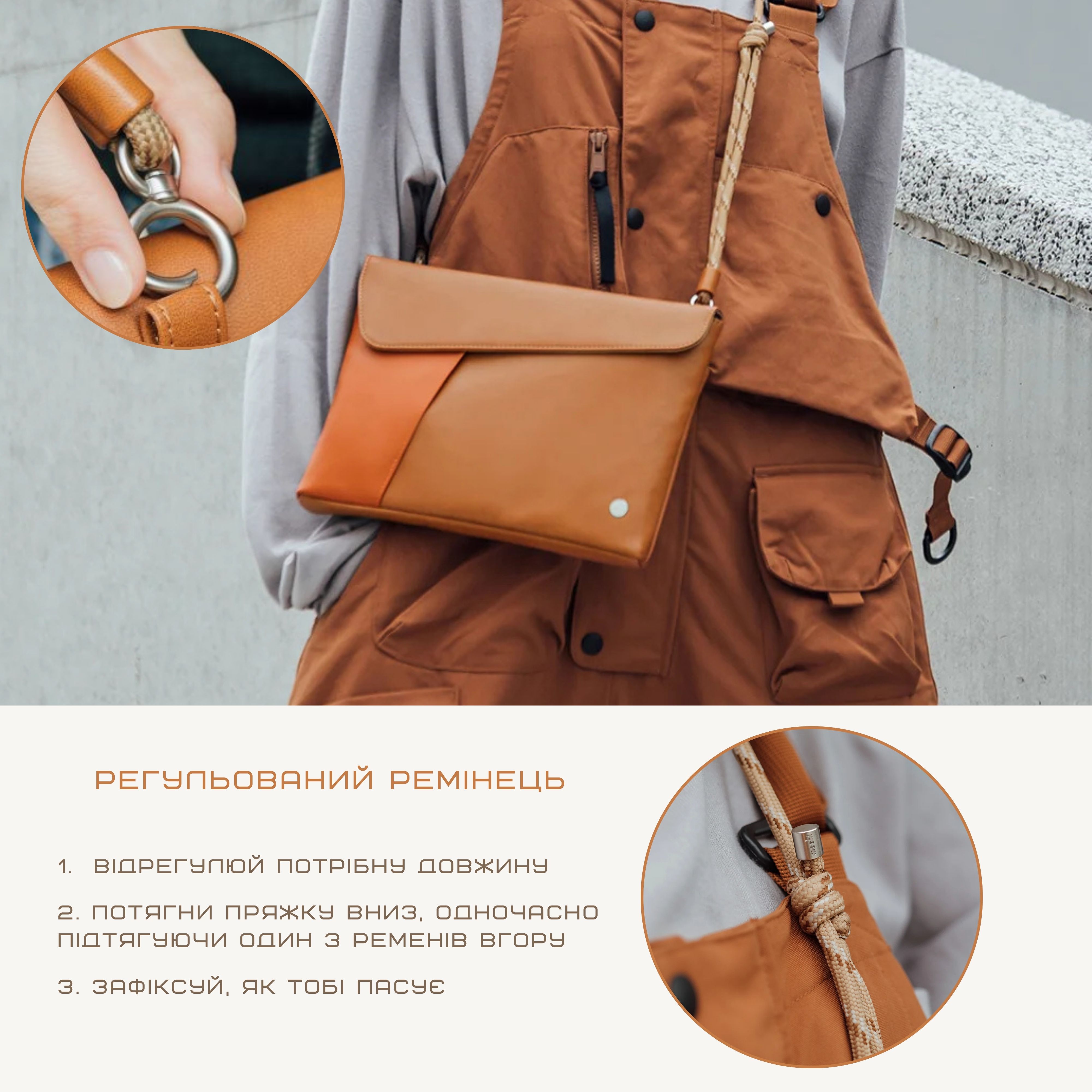 - Регулируемый ремешок, чтобы подобрать нужную длину
