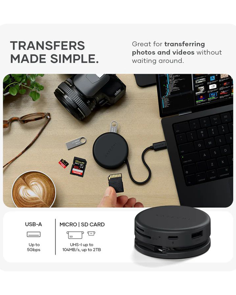 Satechi OntheGo 7-in-1 USB-C — это многофункциональный хаб, разработанный для максимальной продуктивности в любых условиях. Компактный аксессуар расширяет возможности вашего устройства, добавляя порты для вывода видео, проводного интернета и быстрой зарядки. Уникальная система крепления и продуманная эргономика кабеля делают его лучшим решением для мобильного офиса.