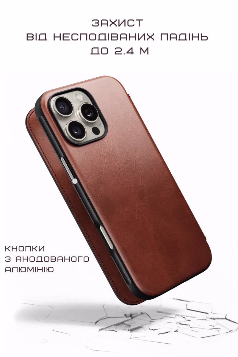 Стильная защита из премиальной экокожи, которая со временем приобретает уникальный вид благодаря естественному патинированию.