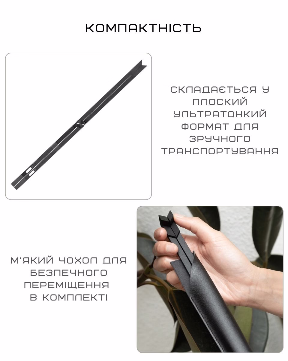 И то и другое. Высота и наклон подобраны для комфортной работы: меньше напряжения на шею, лучшая осанка. А ещё — складывается в плоскую панель, которую удобно носить с собой.5. Особенности использования: