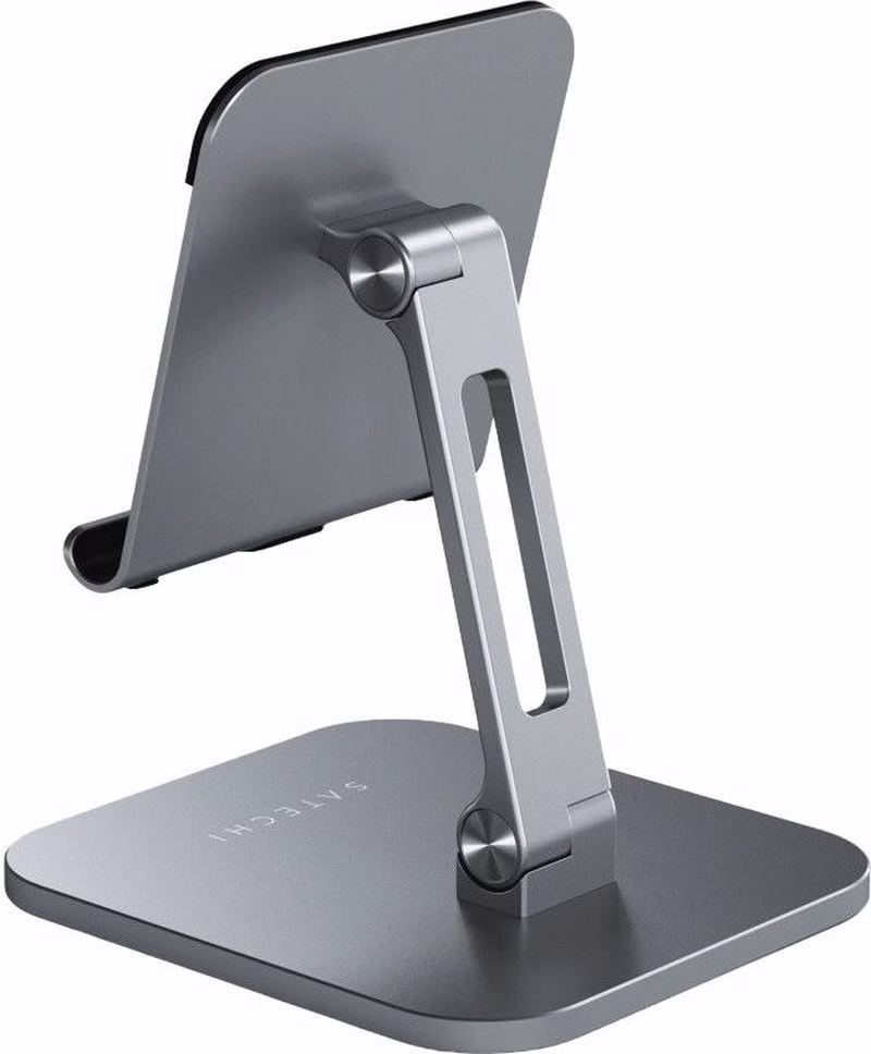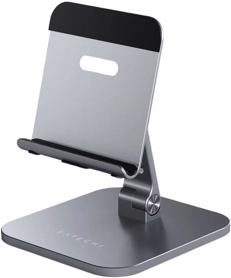 Подставка Satechi Aluminum Desktop Stand for iPad предусмотрена для планшета. Изготовлена из металла и обеспечивает угол наклона до 180 градусов. Планшет можно устанавливать горизонтально и вертикально. В держателе есть прорезиненные вставки, которые защищают планшет от царапин. Также в подставке есть резиновые ножки, они обеспечивают устойчивость на любой поверхности. Подставка совместима с планшетами диагональю от 9 до 13 дюймов.