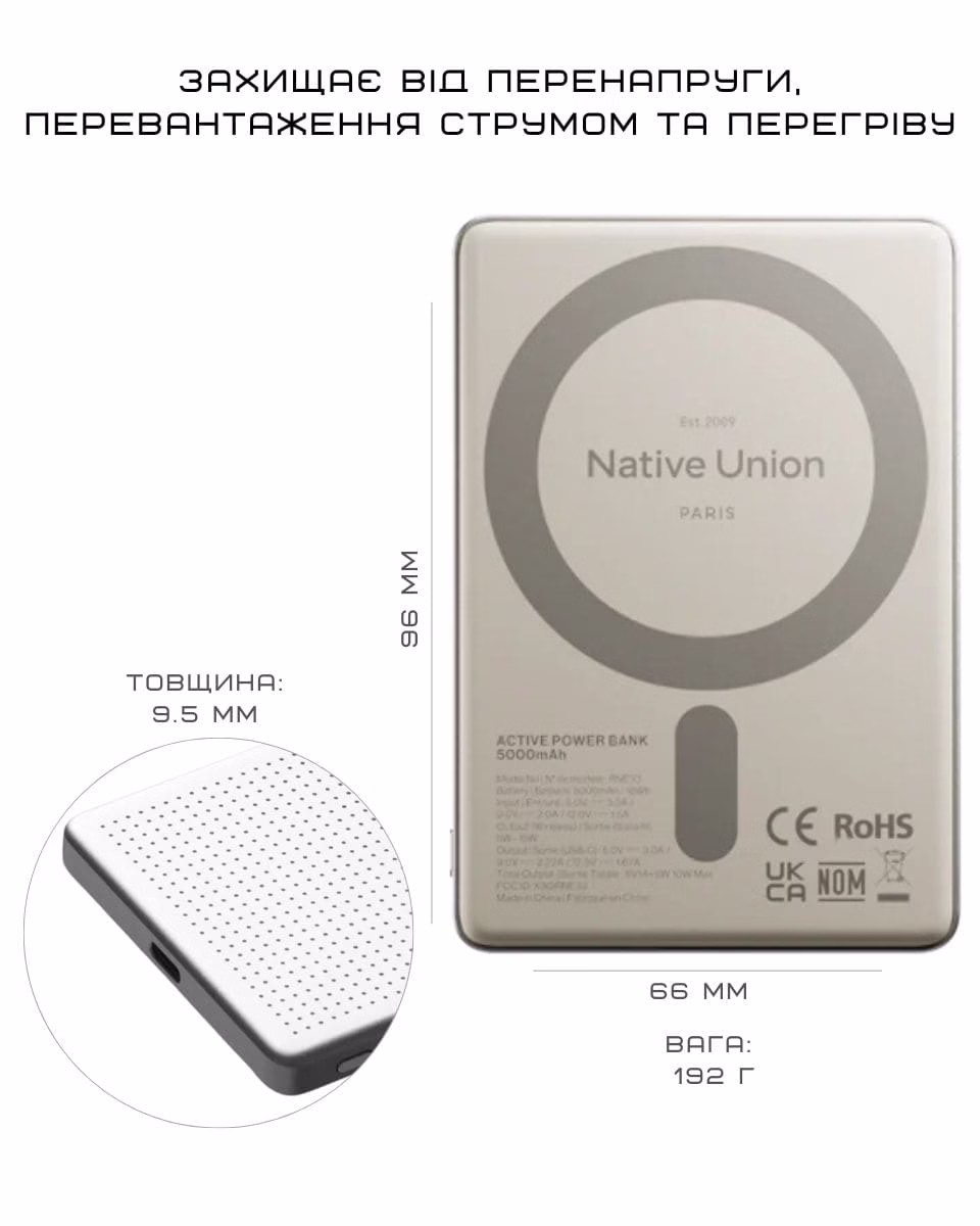 Портативная батарея Native Union Active Magnetic Power Bank 5 000mAh Sandstone (ACTPB-5KMS-SAN)