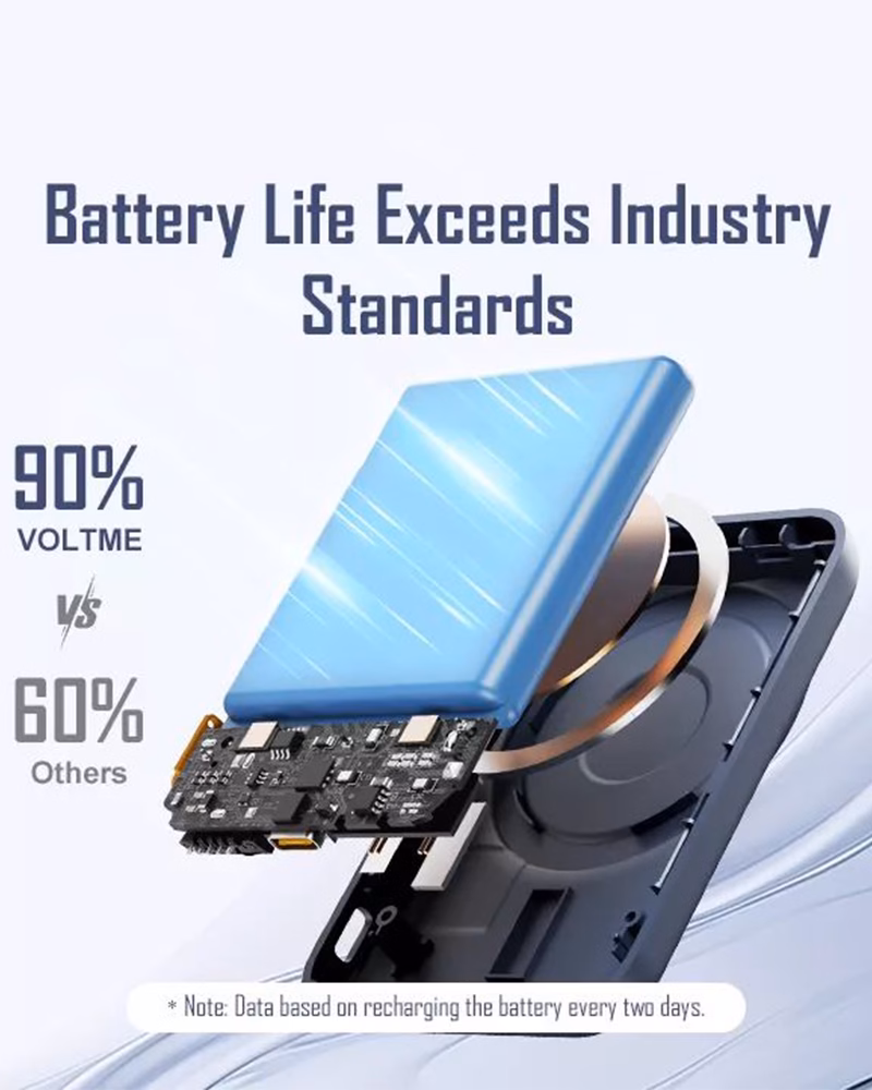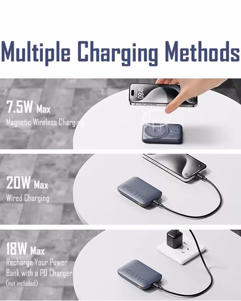 Voltme Hypercore Go 5K — это идеальное дополнение к вашей экосистеме Apple в цвете Deep Blue. Премиальные материалы корпуса подчеркивают современный стиль, а отсутствие лишних проводов делает процесс зарядки максимально естественным. Благодаря мощным магнитам повербанк надежно фиксируется на iPhone, позволяя вам продолжать пользоваться смартфоном во время зарядки без каких-либо ограничений.