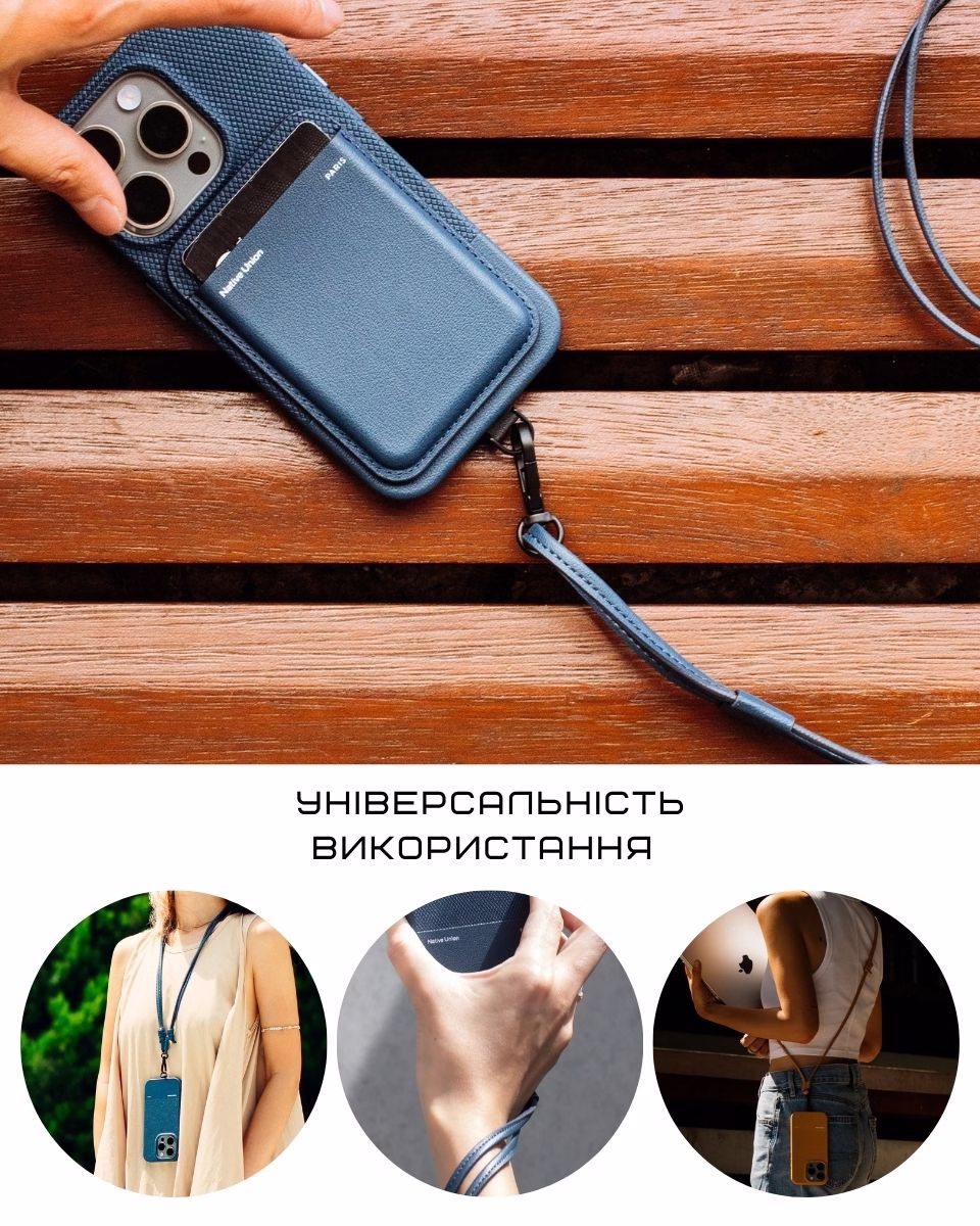 (Re)Classic Sling — универсальный аксессуар. Его можно использовать не только с телефоном, но и с кейсом для наушников, ключами, картхолдером или бутылкой с водой — всё, что нужно иметь под рукой. Удобно, когда не хочется брать с собой сумку, но хочется оставаться мобильным.