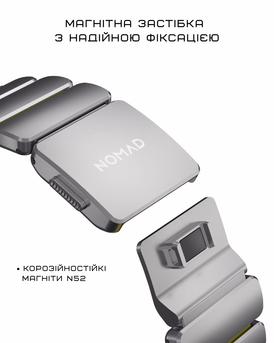 У Stratos Band використовується оновлена магнітна застібка — продовження рішення, яке вже добре зарекомендувало себе в Titanium Band. Всередині неодимовий магніт із нікельованим покриттям. Це допомагає краще протистояти корозії і зберігати стабільну фіксацію з часом. Ремінець чітко фіксується і не послаблюється в русі, сама ж застібка не потребує зусиль — її легко закрити/відкрити однією рукою.