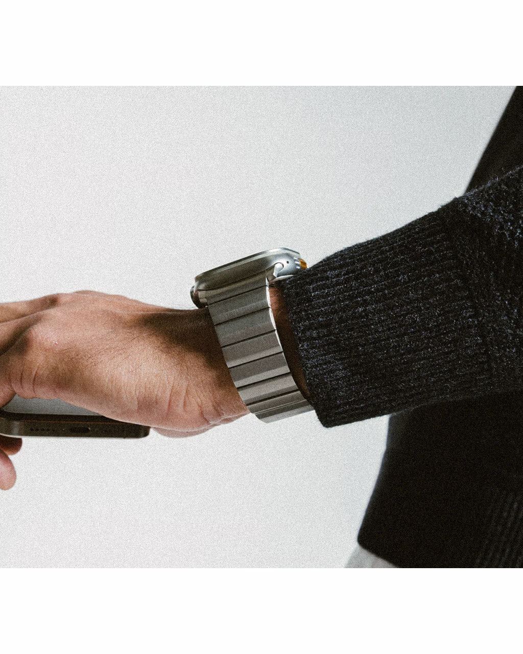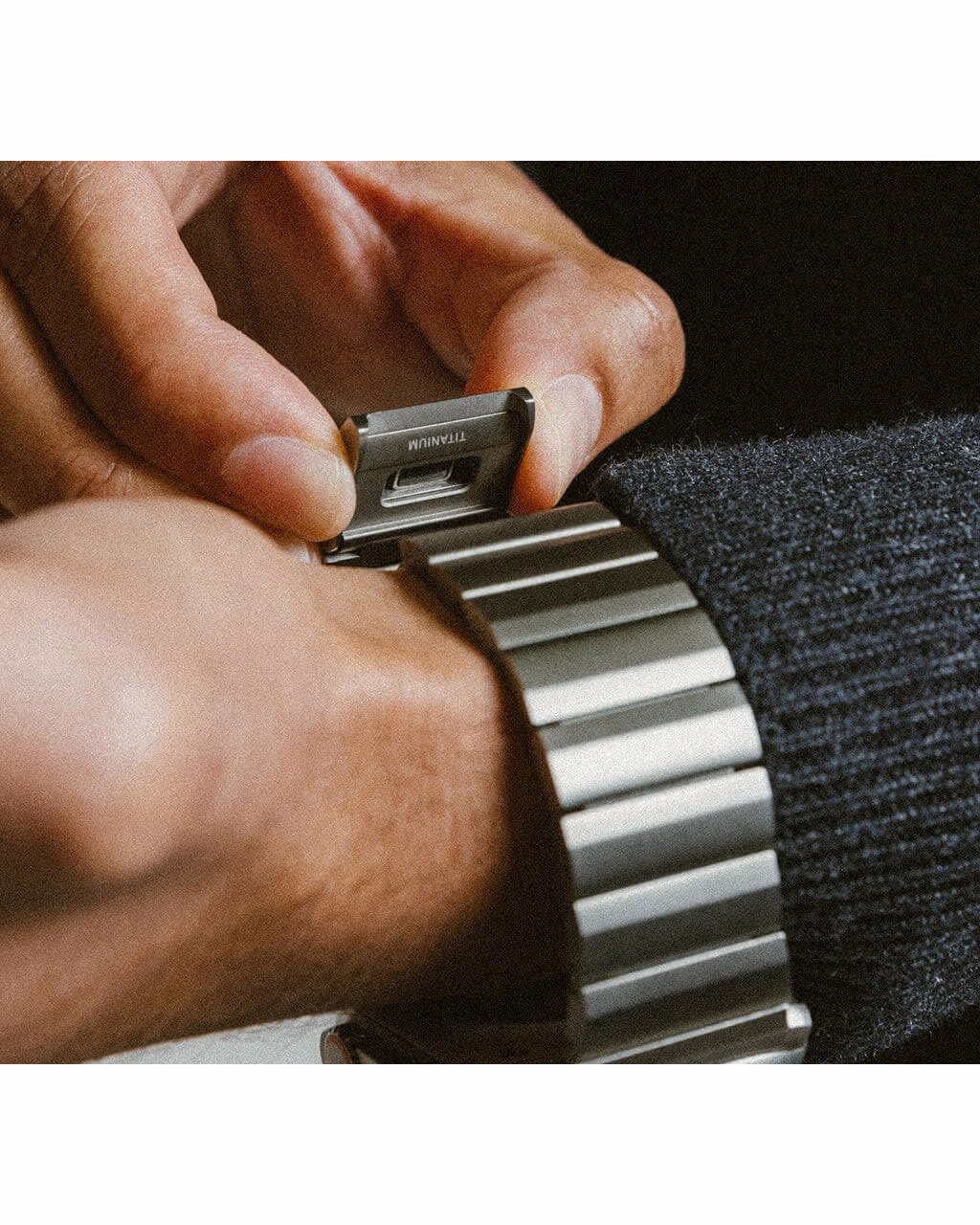 Титановые звенья и пряжки сочетают легкость и исключительную прочность аэрокосмических технологий. Благодаря алмазоподобному углеродному покрытию ремешок выдерживает испытание временем, сохраняя свою уникальность.
