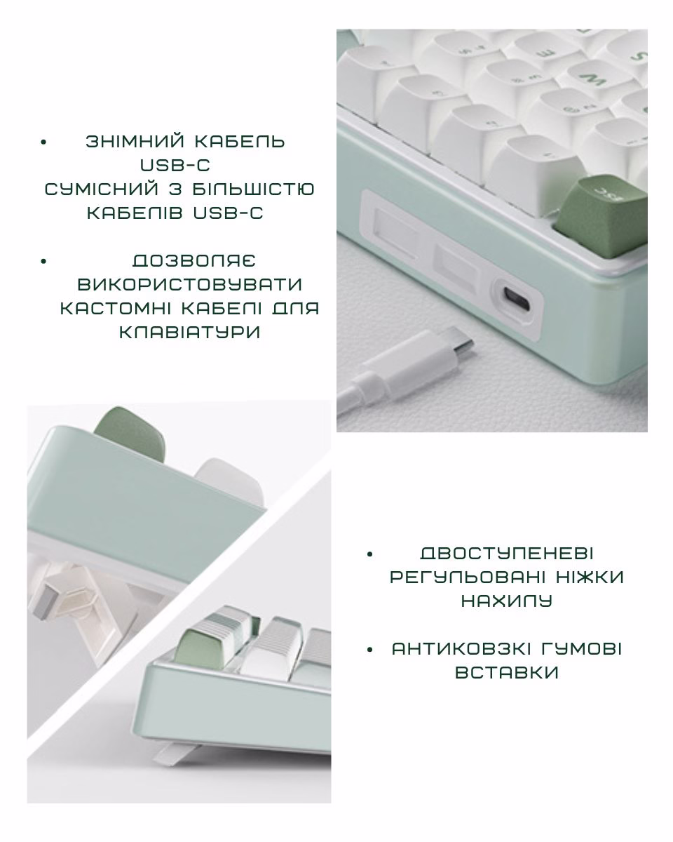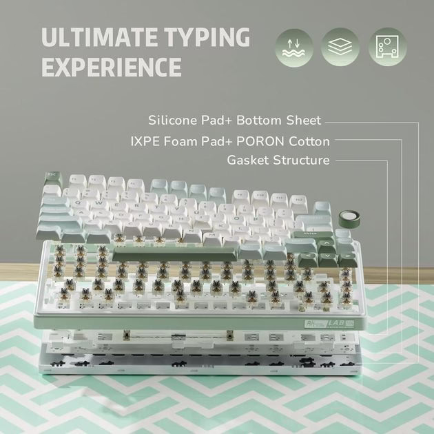 - 5 слоев шумопоглощения: уменьшенный шум и вибрация клавиш, оптимизирует звук переключателей и обеспечивает отличный опыт набора текста