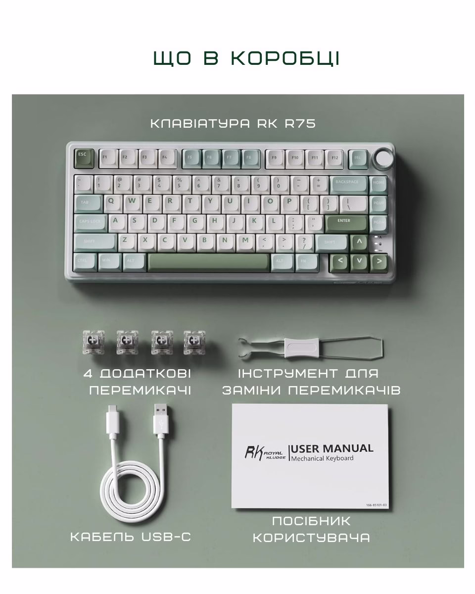 Royal Kludge R75 Wired UA\RU\ENG Cherry Profile (Silver Switch) Sky Cyan (RK-R75UARUENG-CHP-SS-SC)