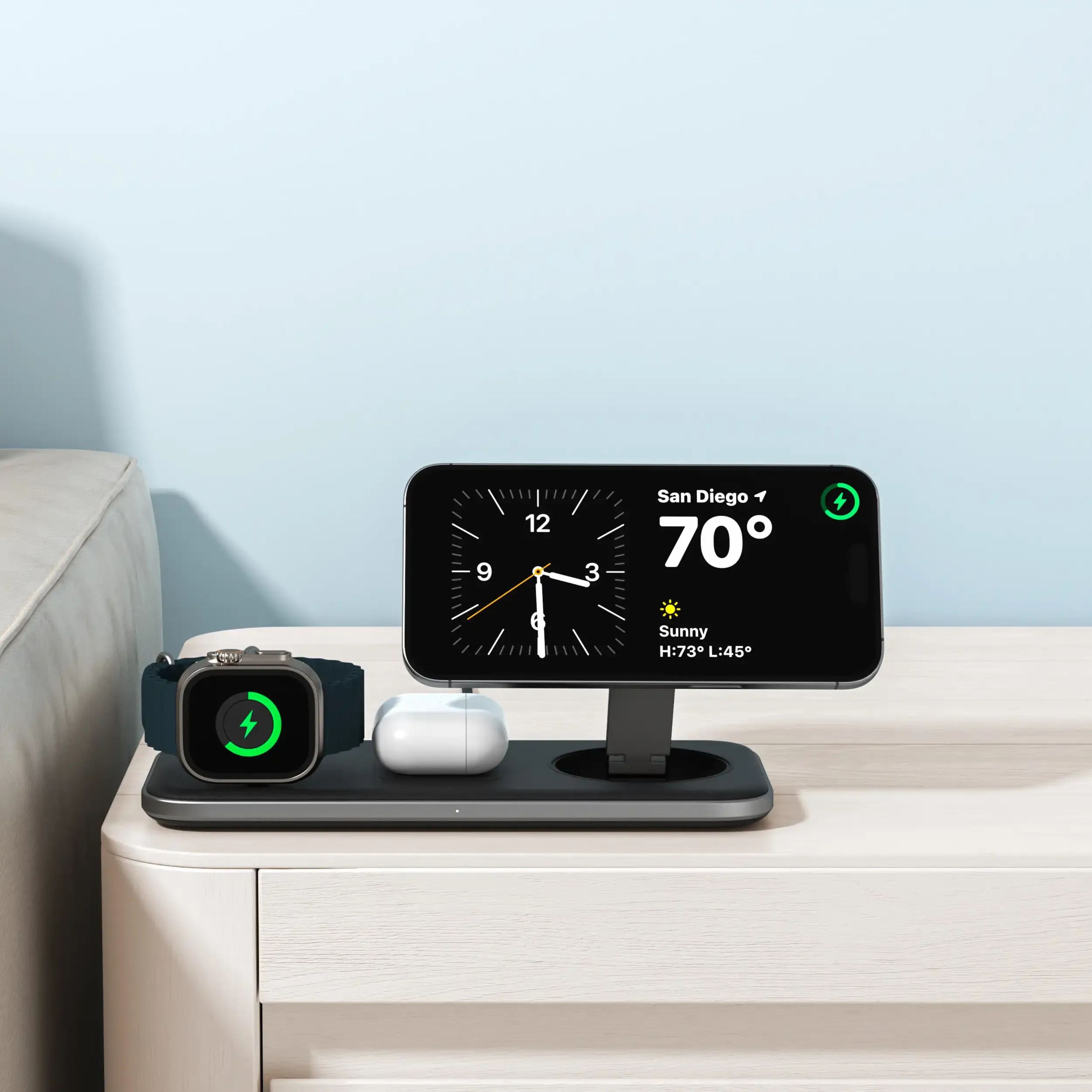 - 3-в-1 – заряжайте iPhone, AirPods и Apple Watch одновременно.
