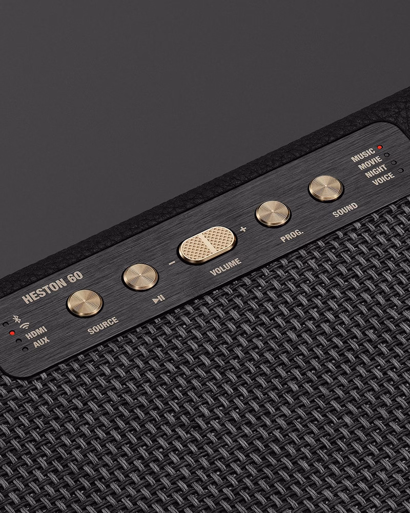 Marshall Heston 60 Black — это идеальное сочетание легендарного шведского инжиниринга и экологического подхода. Поверхность корпуса изготовлена без использования вредных химикатов (PVC-free), а неодимовые магниты драйверов созданы из переработанного промышленного сырья. Благодаря поддержке кодеков высокого разрешения (ALAC, FLAC), этот саундбар способен раскрыть каждый нюанс вашей медиатеки.