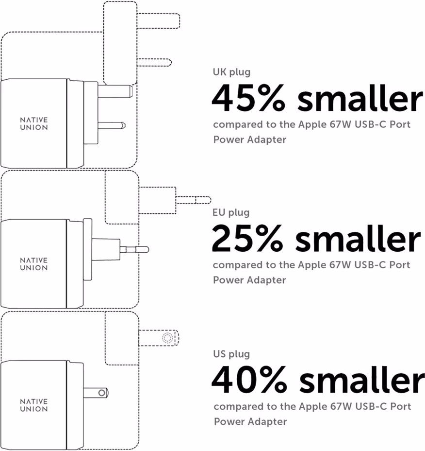 Лучшее зарядное устройство для современного цифрового образа жизни, наполненного путешествиями. Получите доступ к зарядке двух устройств одновременно с использованием технологии Power Delivery мощностью 67 Вт в легком карманном форм-факторе, включающем несколько адаптеров, поэтому ваши устройства всегда будут готовы к путешествиям, где бы то ни было.