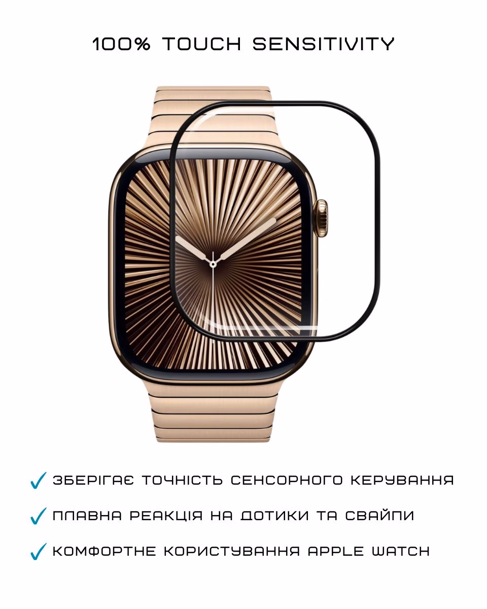Стекло сохраняет высокую чувствительность сенсорного экрана, поэтому управление Apple Watch остается таким же плавным и точным, как и без защиты. Касания, свайпы, прокрутка меню или переключение функций отрабатываются без задержек.